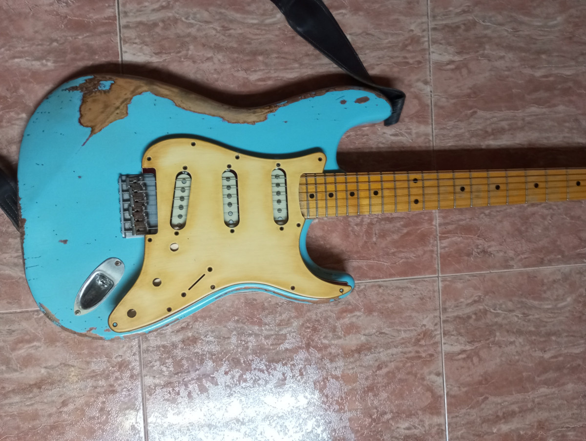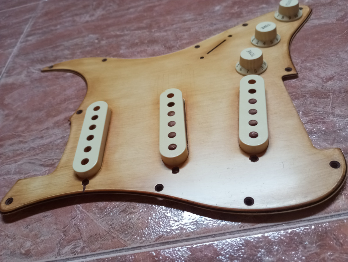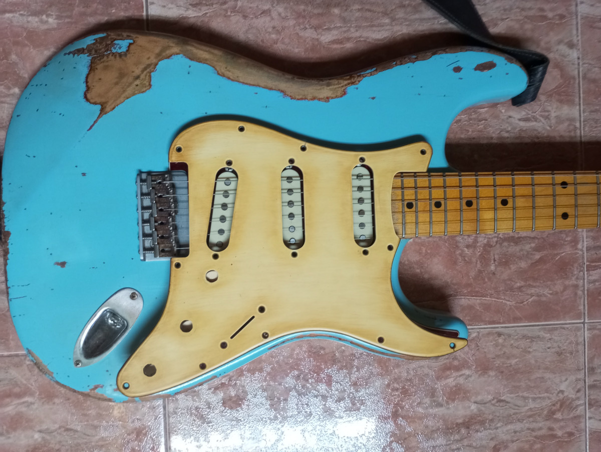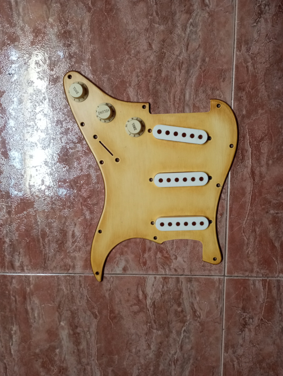 Vendo dos golpeadores(pickguard) para stratocaster envejecidos artesanalmente,,ideal para proyectos relic tipo fender,mjt,all parts,partcaster,warmoth