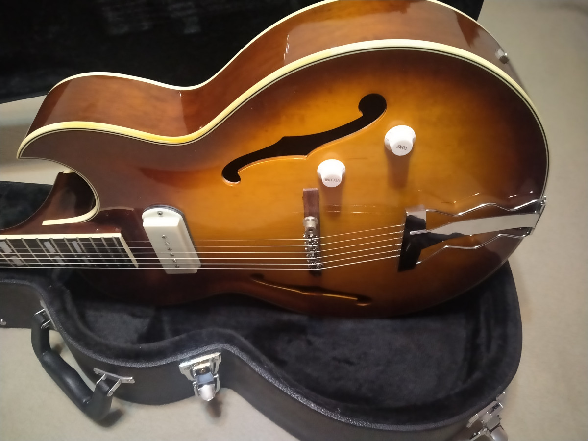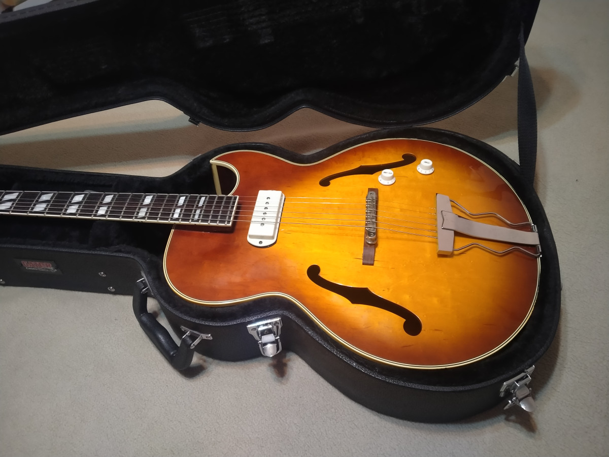 Pastilla Guild Franz P90 y potenciómetros de volumen y tono. Estuche rígido y envío incluidos en el precio. Excelente guitarra de Jazz, blues y Rockabilly.