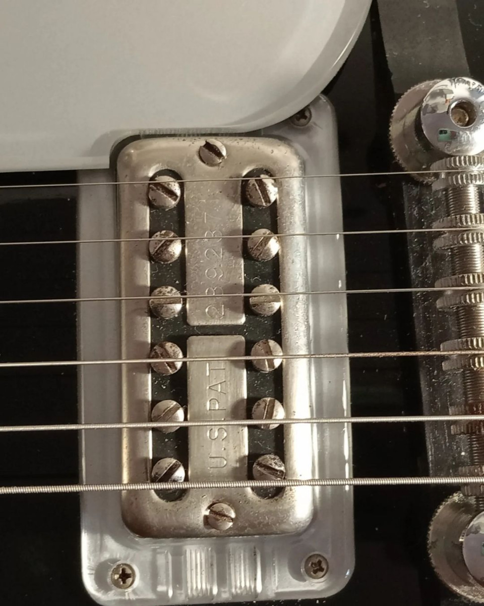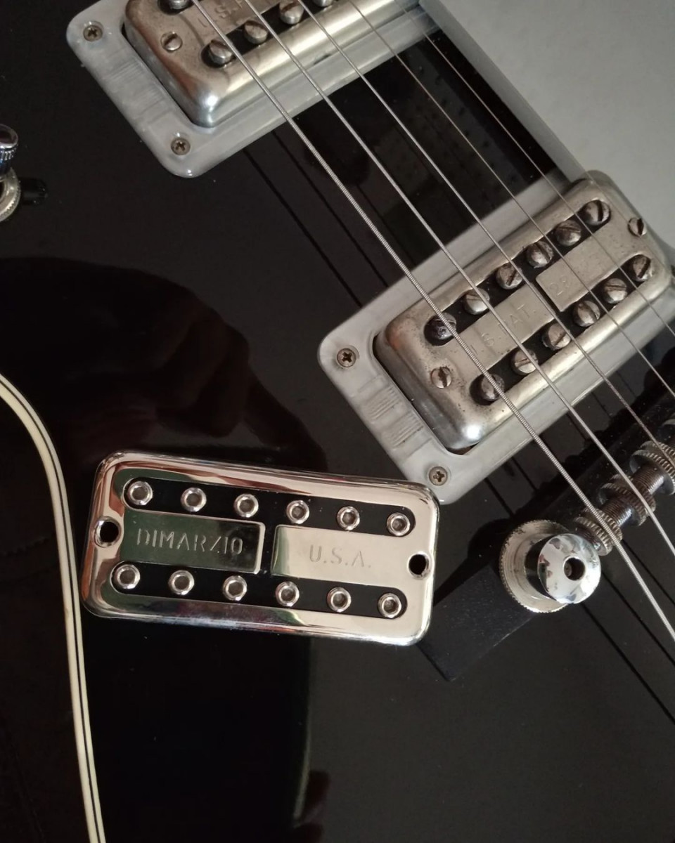 Incluye maletín original, papeles, un juego de afinadores de recambio pata negra y una Dimarzio Super Dis'tron.