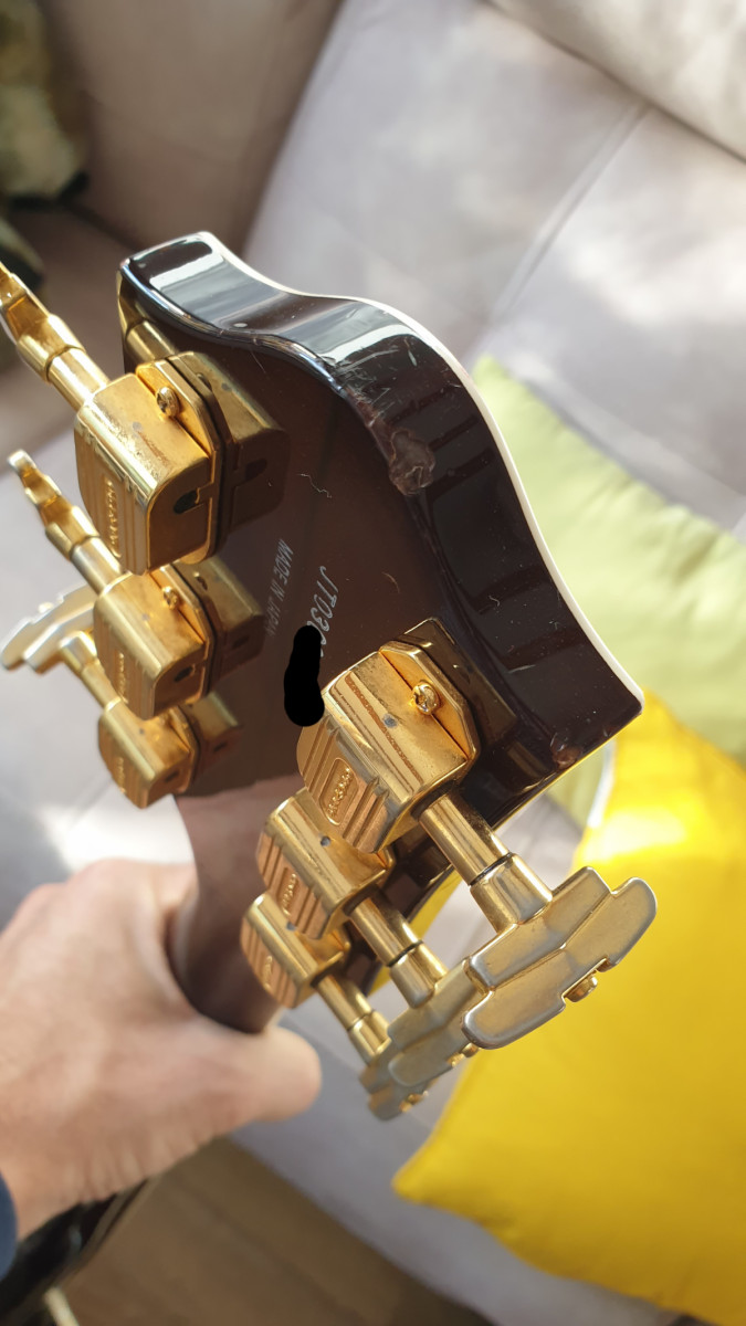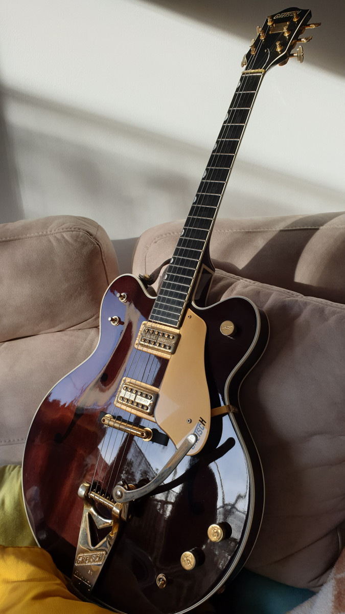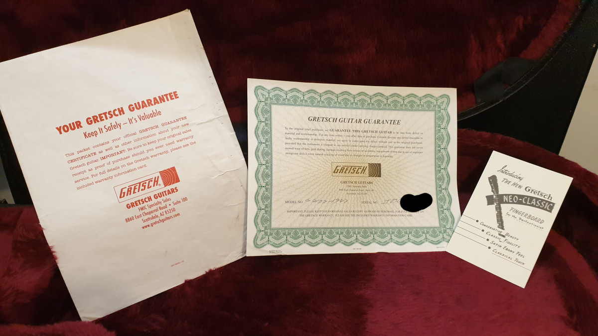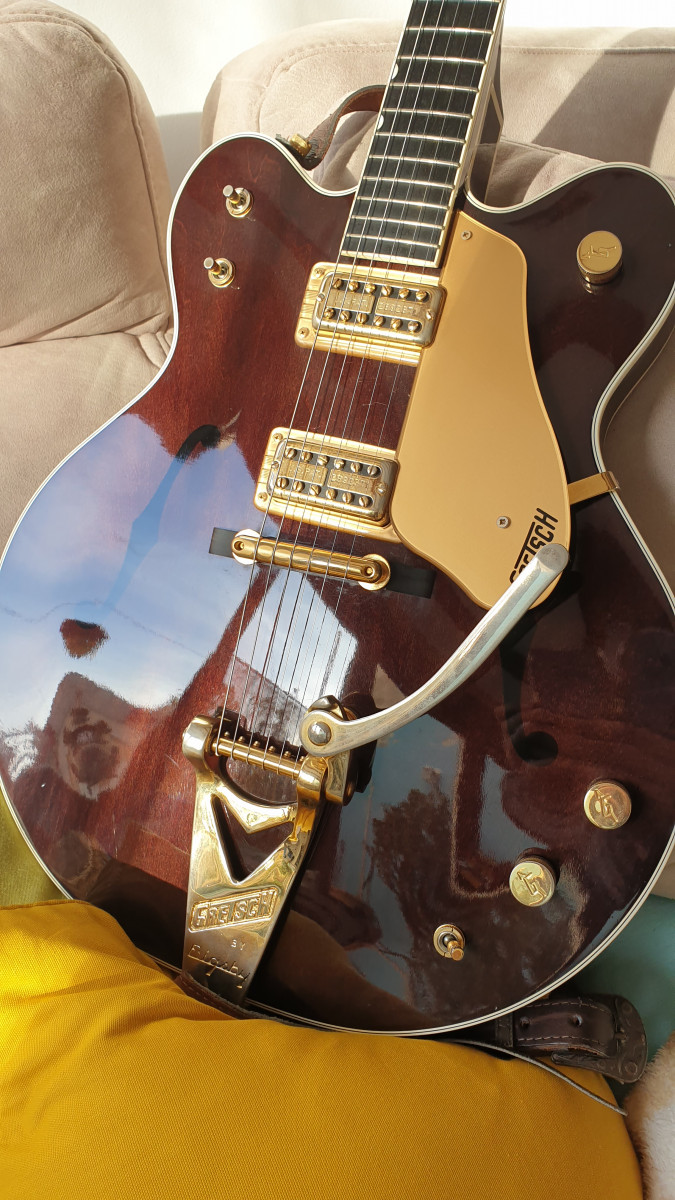 Magnífica Gretsch del año 2003. Tiene mucho uso (ha sonado hasta en el mítico The Cavern), por lo que tiene muestras de ello, pero está muy bien conservada y mantenida.
