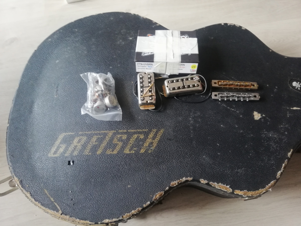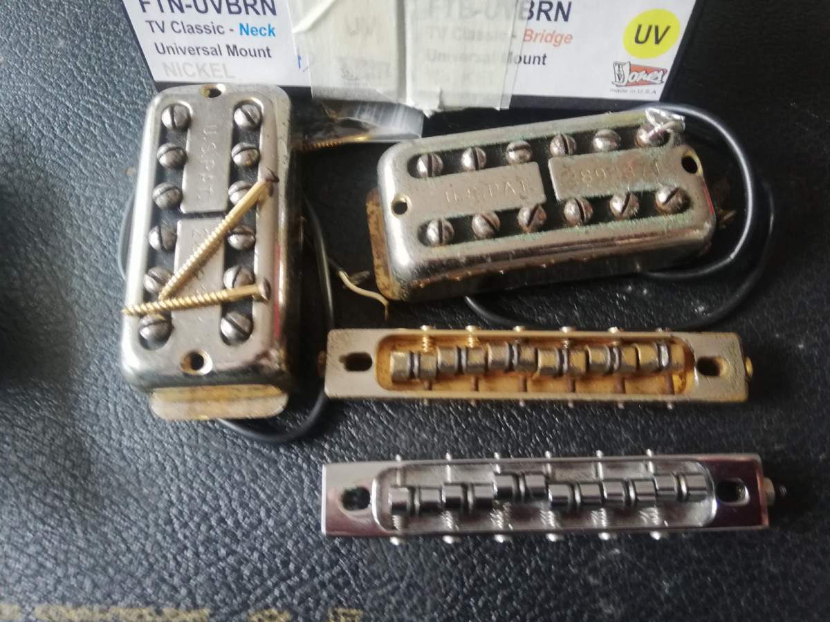Conservo pastillas y puente originales, lleva su estuche original, con mil batallas pero funcionando.