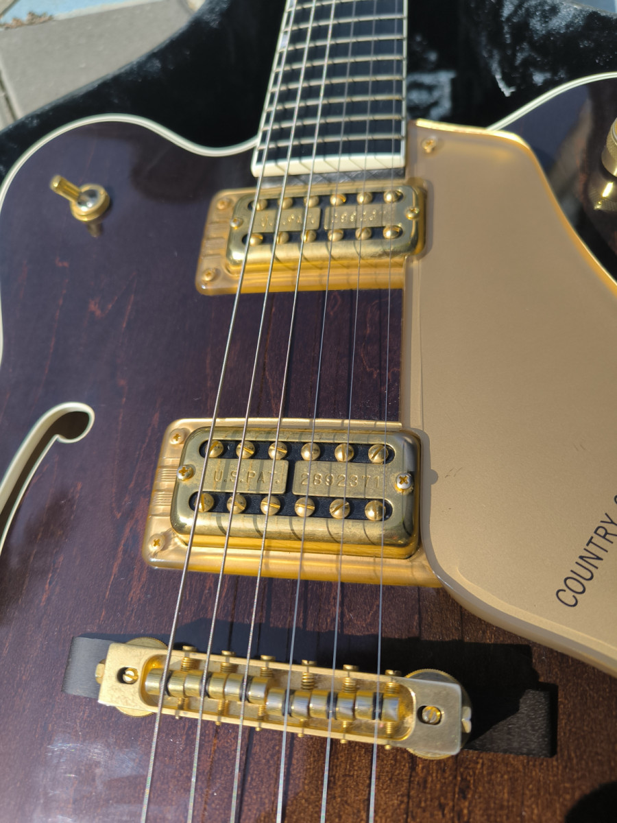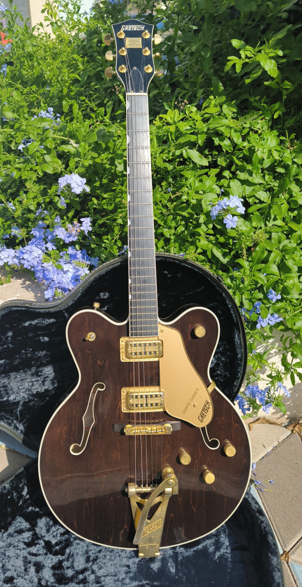 Hola, guitarra mítica dentro de las Gretsch, con 25 años de edad está en un estado excelente, trastes al 80% como mínimo, dorado bien conservado, bien ajustada por luthier y con estuche gretsch.