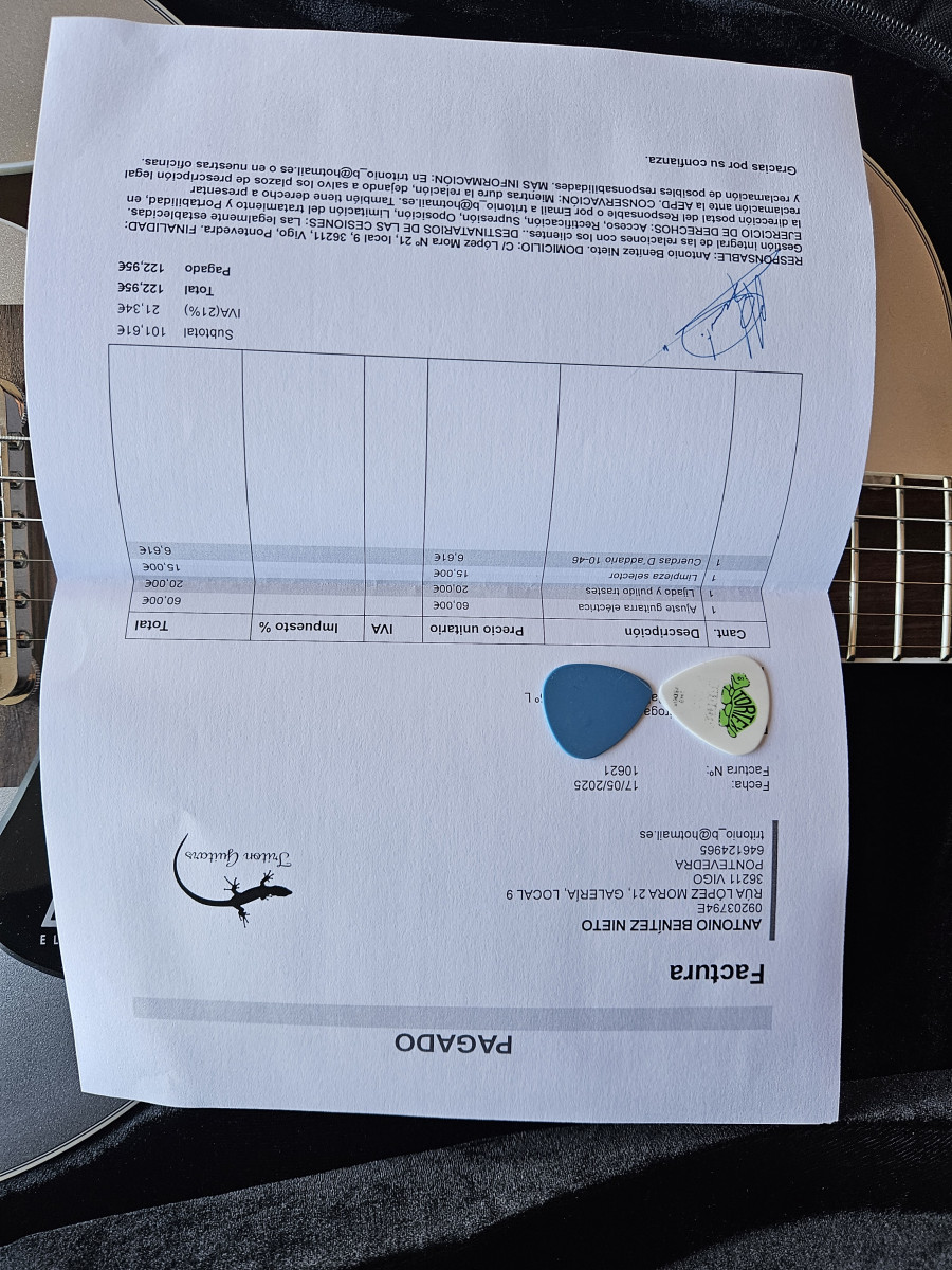 La guitarra está por 766€, el luthier fueron 122,95€ y regalo estuche rígido