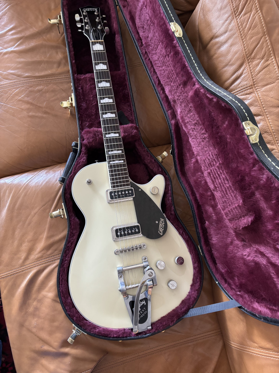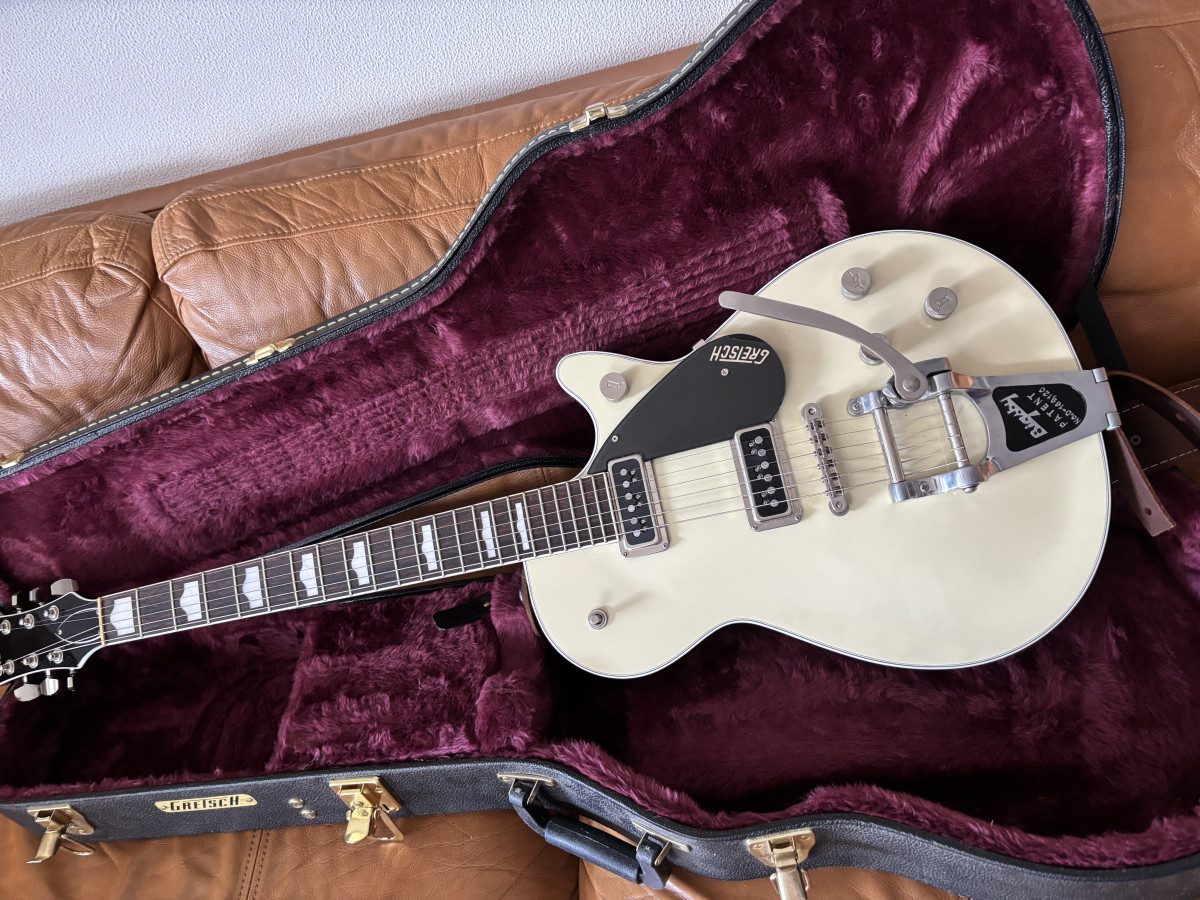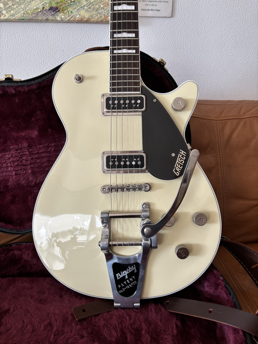 Gretsch G6128T Player’s Edition Jet DS con Bigsby, en el elegante acabado Lotus Ivory.