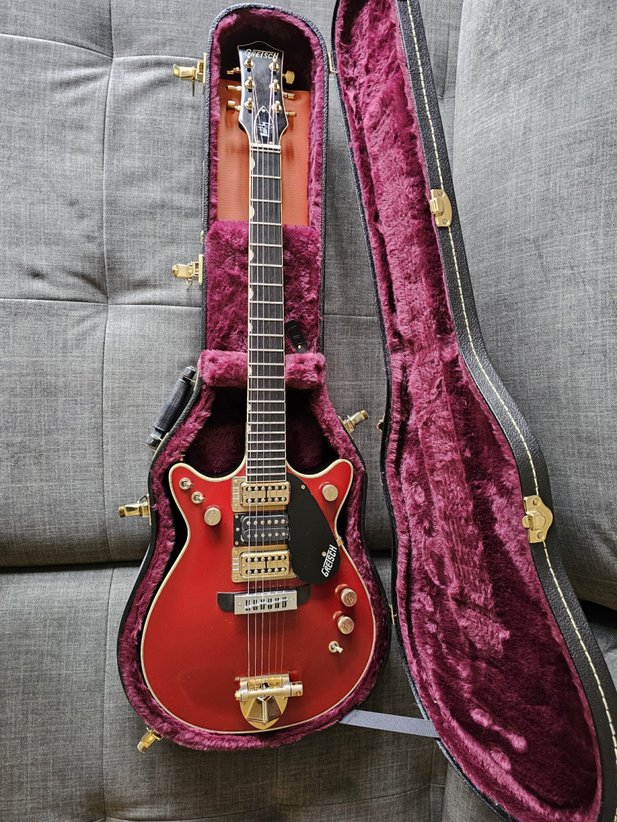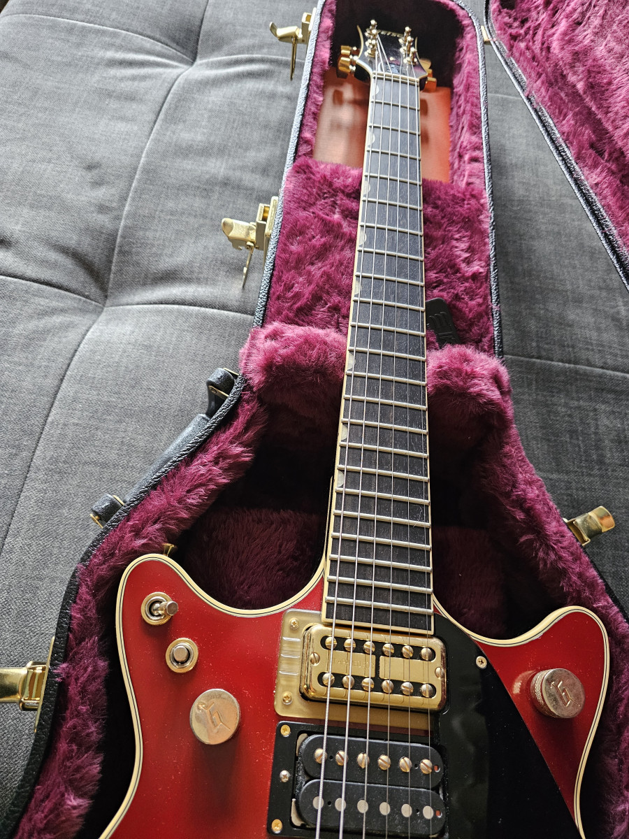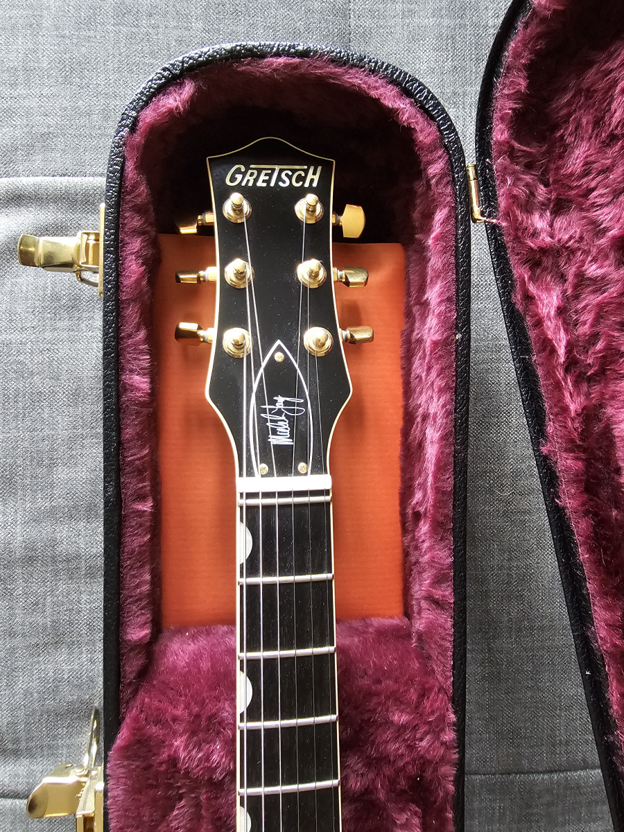 Si antes de venderla puedo conseguir el dinero de otra manera, la retiraré de la venta, ya que quisiera conservarla. Es una guitarra fascinante. Tiene un plus si eres fan de AC/DC, pero, si no, es secundario, ya que la guitarra es preciosa y sólo un conocedor de AC/DC sabría que se trata de un modelo signature. A mi parecer, no hay comparación en lo que obtienes con este modelo frente a la jet de Malcolm que no tiene pintura y tiene sólo la pastilla del puente.