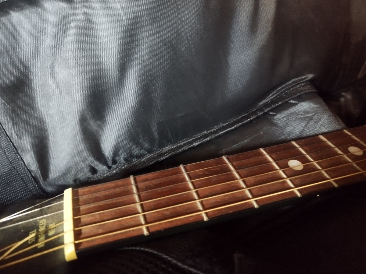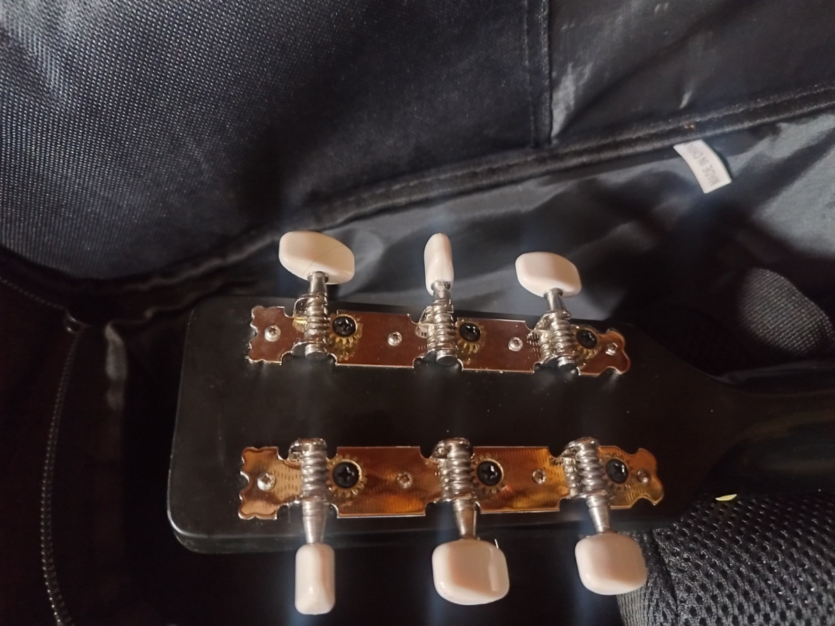 - nunca ha salido de casa, solo tocada en el sofá, ajustada por luthier para este efecto, cómoda y agradable de tocar.