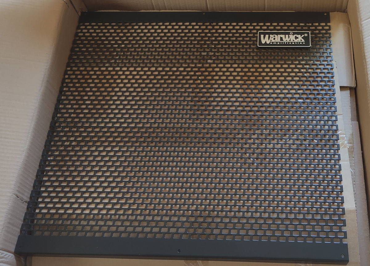 GRILL REJILLA de alta calidad WARWICK SP WA A002070. Reemplazo directo para pantallas WCA 410 y WCA 115 pero válida con una ligera adaptación para otras pantallas 4x10 ó 1x15 de otras marcas o para proyectos DIY. Medidas 58cm de alto x 60cm de ancho. Regalo dos cantoneras. Todo nuevo a estrenar, caja abierta para sacar las fotos. Me costó más de 100€ con el envío desde Warwick, pero como ya no tengo la pantalla a la que se lo iba a poner la cambiaría por cualquier cosa que me pueda cuadrar, no importa que lo que me ofrezcas sea más barato.