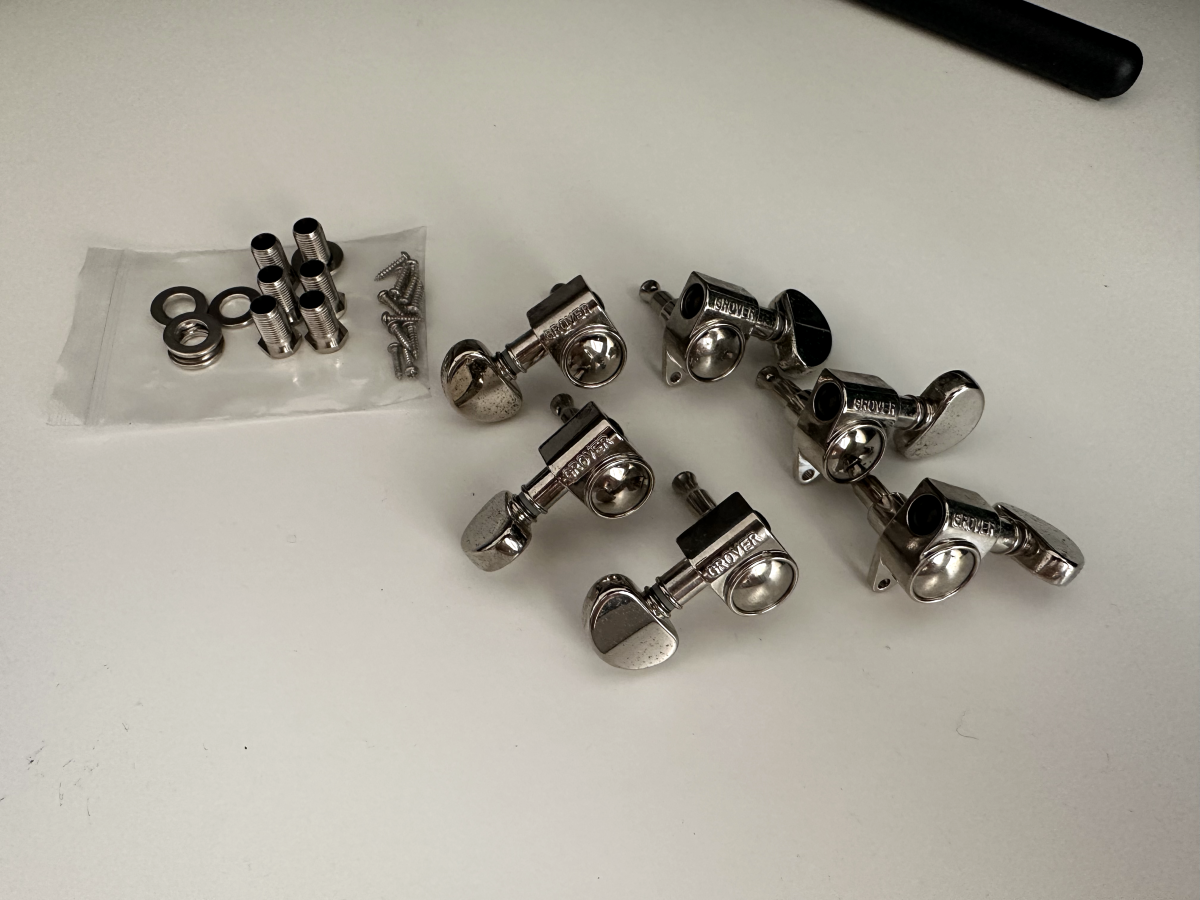 Clavijeros Grover nickelados, sacados de una Epiphone, configuración 3+3.
