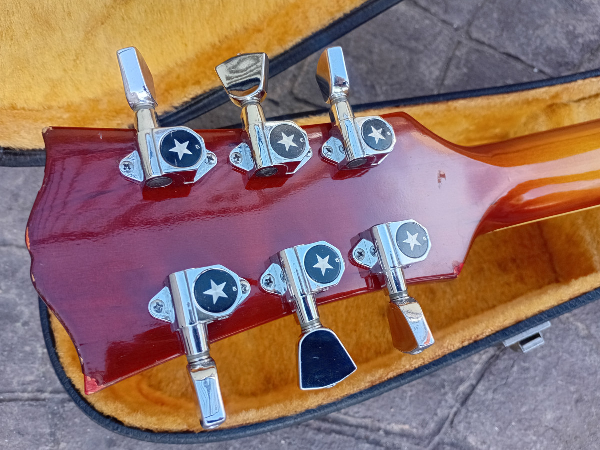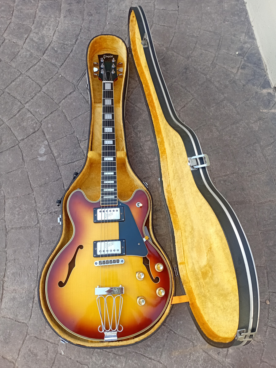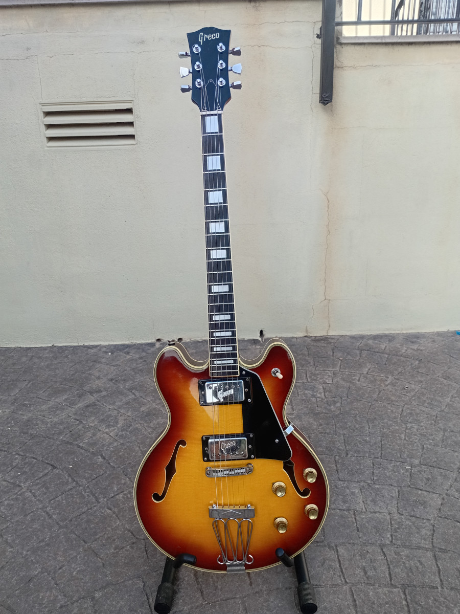 Vendo, preciosa guitarra Greco SA 500 de colección estupenda, Japonesa de la casa fujigen donde hacian las (famosas fender robben ford,) color sumburs claro, año de fabricación 1977 aproximado, perfecta para tocar lo que te guste es un tamaño tipo la 339 de gibson y un poquitin mas gruesa ,suena potente,las pastillas se dice que hacian réplicas de las PAF, es toda hueca,como la gibson 330,de aí el poco peso que tiene sobre 2, kilos y 300 kilogramos, aprox. esta no te partirá la espalda si tocas toda la noche,un buen detalle es que tiene el enganche de la correa como las stratos ,en la parte de arriba del cuerno entonces al colgartela es muy estable,y al contrario de las 335 ,339 y similares que llevan el enganche en el cuerpo y se mueven mas. Lleva estuche duro original.