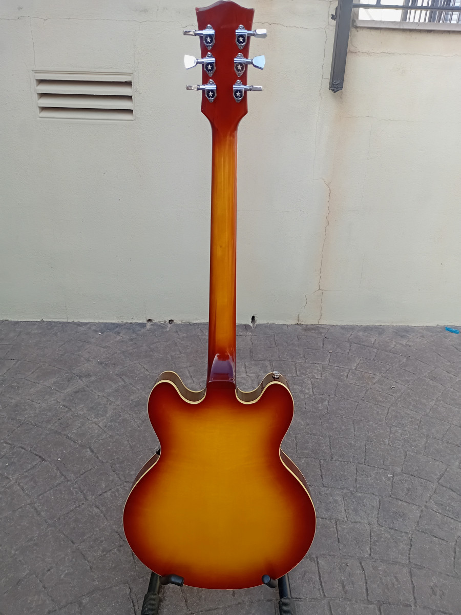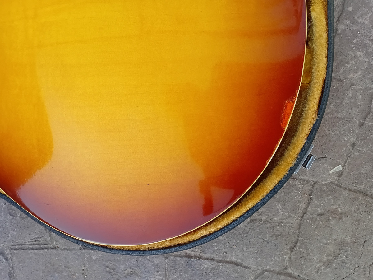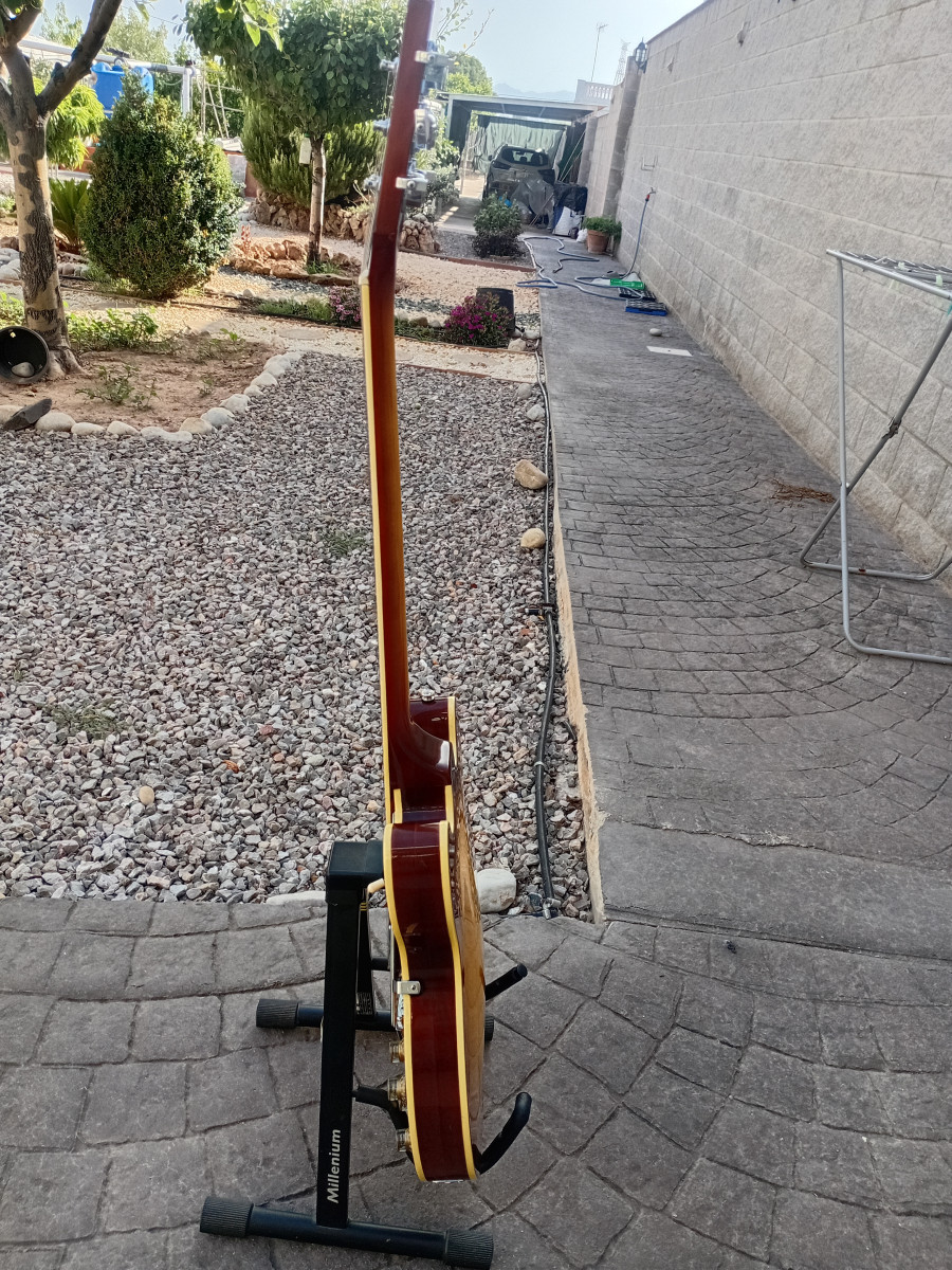 Vendo, preciosa guitarra Greco SA 500 de colección estupenda, Japonesa de la casa fujigen donde hacian las (famosas fender robben ford,) color sumburs claro, año de fabricación 1977 aproximado, perfecta para tocar lo que te guste es un tamaño tipo la 339 de gibson y un poquitin mas gruesa ,suena potente,las pastillas se dice que hacian réplicas de las PAF, es toda hueca,como la gibson 330,de aí el poco peso que tiene sobre 2, kilos y 300 kilogramos, aprox. esta no te partirá la espalda si tocas toda la noche,un buen detalle es que tiene el enganche de la correa como las stratos ,en la parte de arriba del cuerno entonces al colgartela es muy estable,y al contrario de las 335 ,339 y similares que llevan el enganche en el cuerpo y se mueven mas. Lleva estuche duro original.