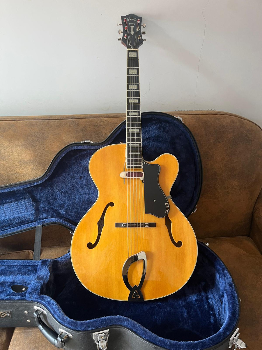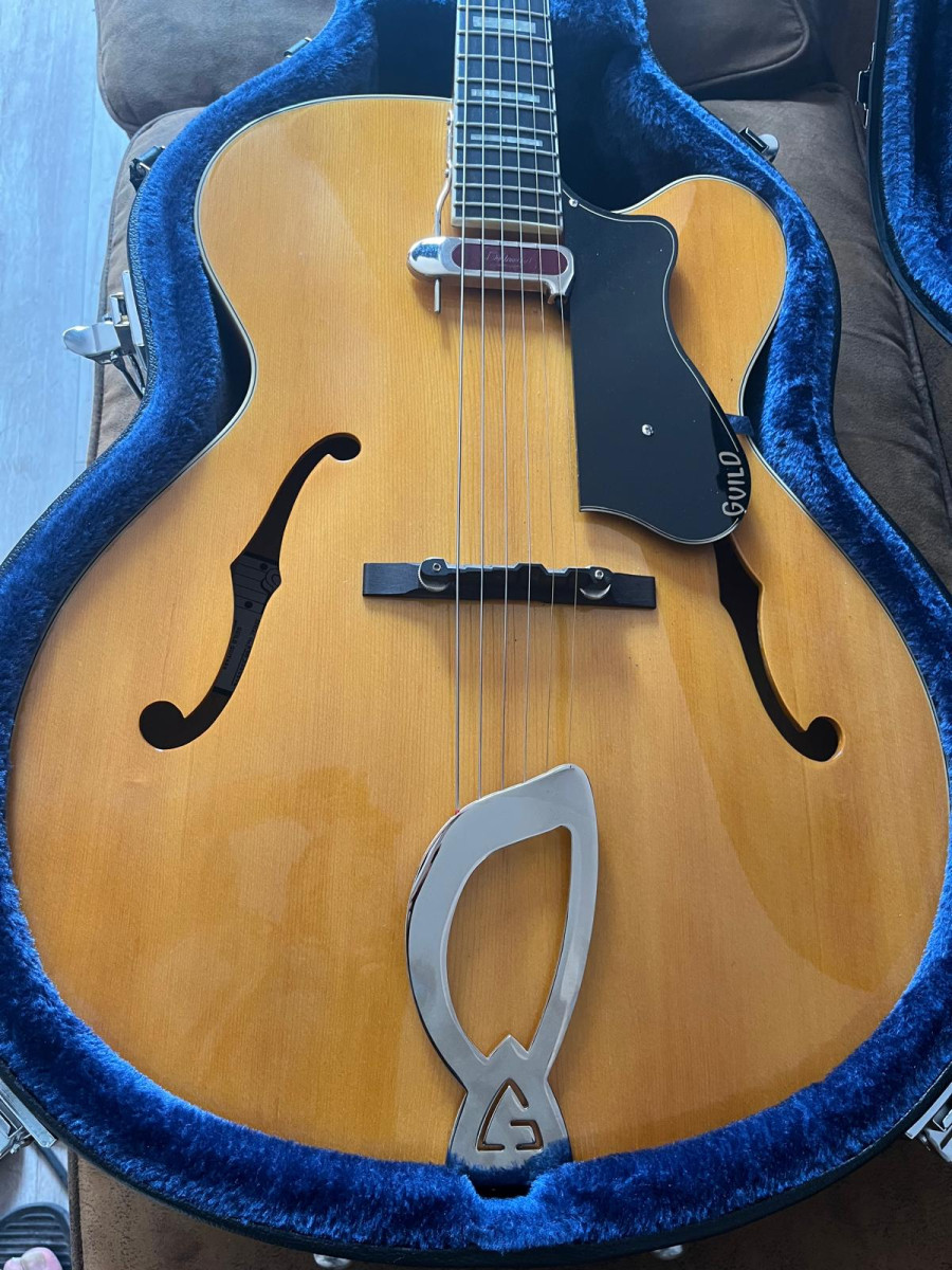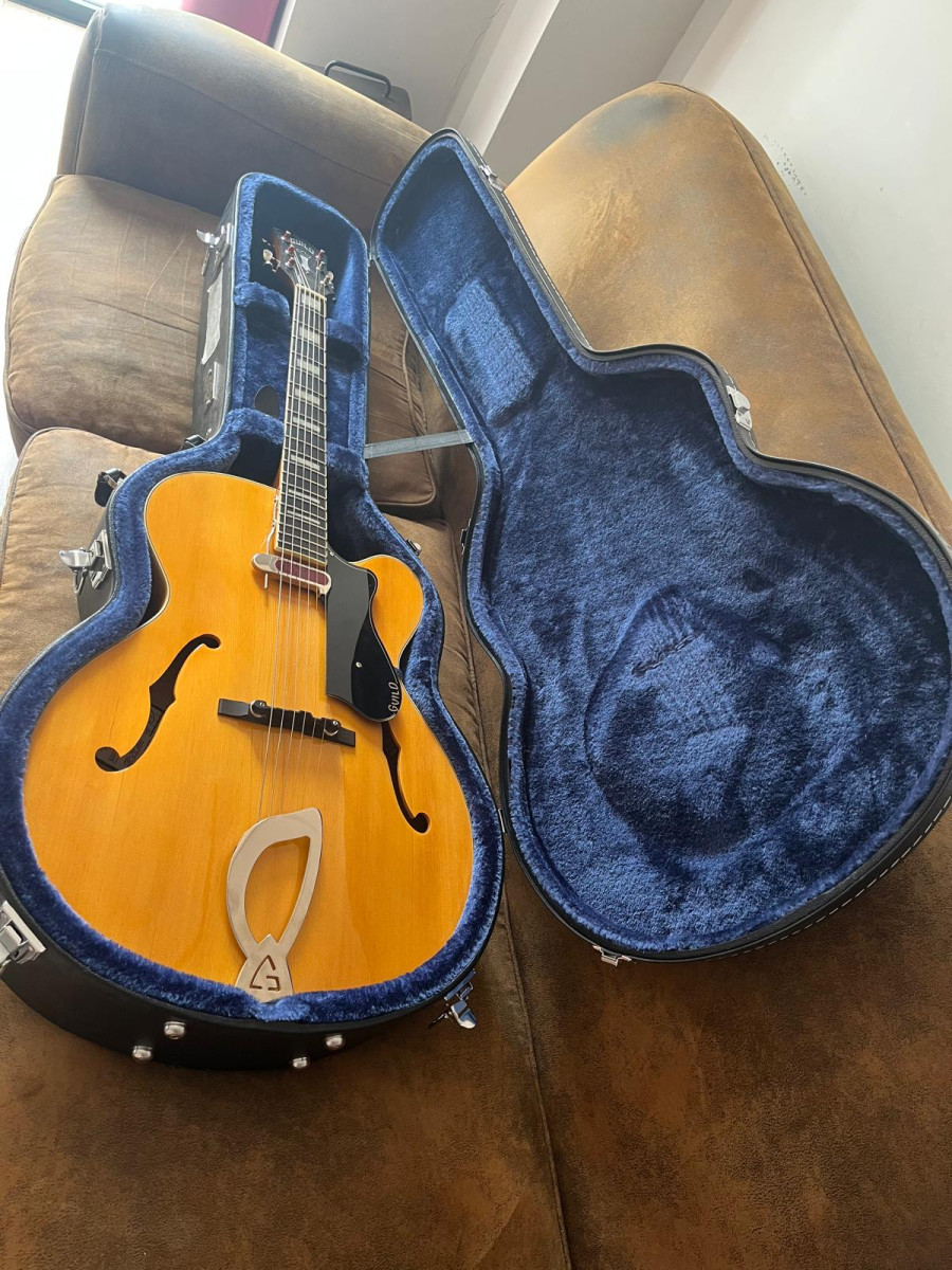 Vendo mi Guild 150 Savoy, comprada el verano pasado, tocada sólo en casa, impecable, mejor que nueva con cuerdas del 12 cambiadas hace tres meses y sin apenas uso. Estuche rígido muy chulo, pastilla DeArmond Rythm Classic, cuerpo de arce flameado, diapasón de ébano, sonido profundo y grave, un clásico, maravillosa, sin toques o rasguños, perfecta. 629158107, Madrid, no cambios