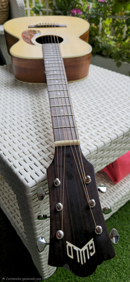 Guitarra electroacústica Guild Modelo M240-E. Si buscas una guitarra que reúna todo lo que necesitas: tamaño, comodidad. que sea electroacústica. Y que se un marca reconocida y con un precio asequible ,esta es una buena opción. La guitarra está en buen estado, algunas marcas como se aprecia en las dos últimas fotos, pero es solo estética. Le dan carisma a la guitarra. La entregó con funda y correa para colgarlas mas guitarras en mi perfil