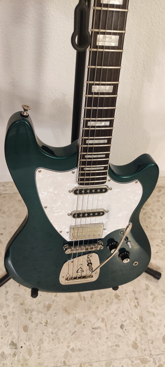 Cómo nueva, con estuche rígido (gator) que no ha salido de casa, se incluyen llaves y chuches de la guitarra, se toca de lujo. Mástil de arce tostado premium satinado, diapasón de palisandro muy oscuro, pastillas: humbucker en el puente y dos DeArmond aerosonic en el medio y mástil, el vibrato es de lo mejor ya que es suave como el de una jazzmaster pero con la ventaja de que puedes dejar fija la palanca con un ajuste que tiene en la base, se puede probar sin compromiso en Córdoba capital.