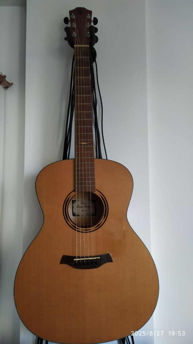 Guitarra acústica de tapa maciza y tamaño auditorio, con buena buena sonoridad y mástil especialmente orientado al fingerpicking.