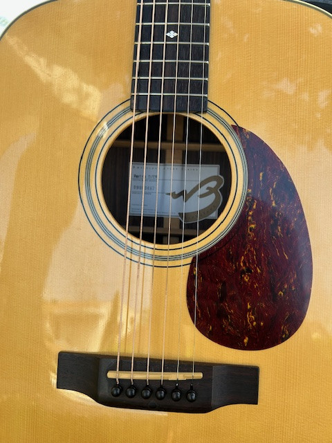 SPECS: Retro Series D/ERe Dreadnought Acoustic-Electric Guitar Pre-war style dreadnought shape Solid Englemann spruce top, 3.2 mm thickness Solid rosewood back and laminate sides Advanced, scalloped “Pre-War” X bracing Dovetail neck joint Rosewood fingerboard, unbound Ivoroid body binding BWB rosette and BWBWB top purfling Pearl centered Diamond position markers at the 3,5,7,9,12,15, and 17 frets Side Dot position markers at frets 3,5,7,9,12,15 and 17 Ivoroid heel cap Glossy finished body & headstock with satin finished neck Soundhole truss rod adjustment 25.5” string scale length 1 11/16” (43mm) Nut & 1/8” Saddle Solid squared headstock Rosewood headstock overlay Rosewood pinned “belly” bridge 18:1 Grover Sta-Tite vintage tuners Vintage style tortoise pickguard