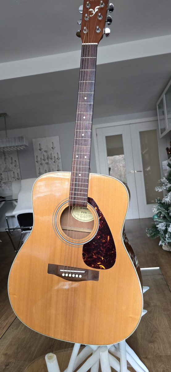 Guitarra acústica Yamaha con acabado natural.