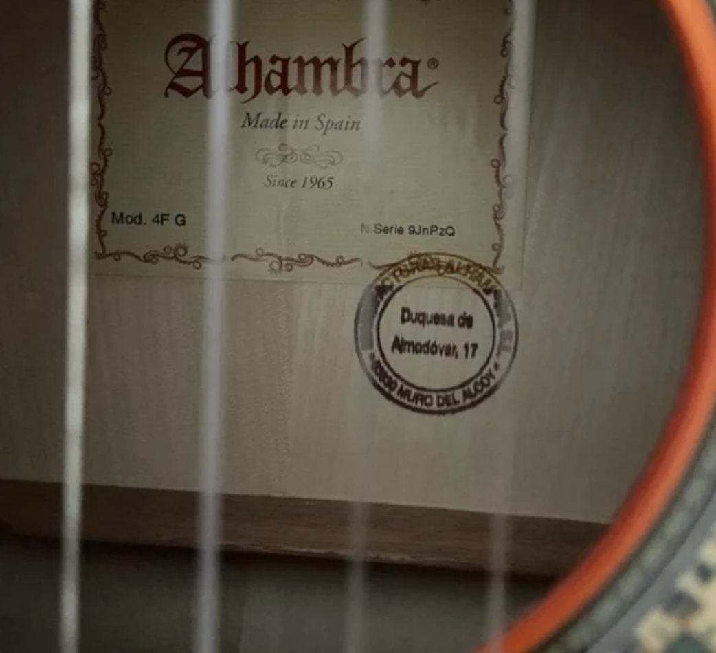 Guitarra clásica Alhambra 4F G - Modelo: 4F G - Número de serie: 9JnPZQ - Fabricada en España - Color naranja
