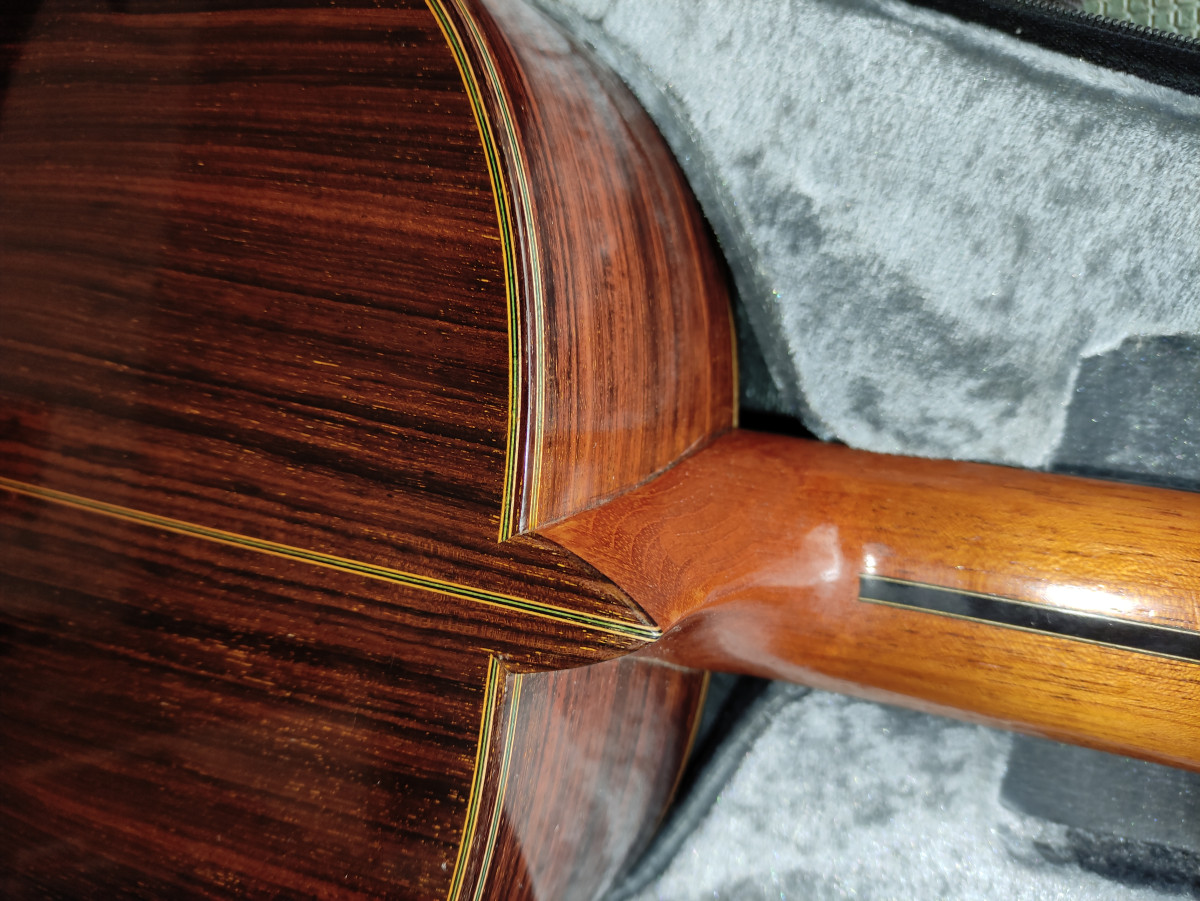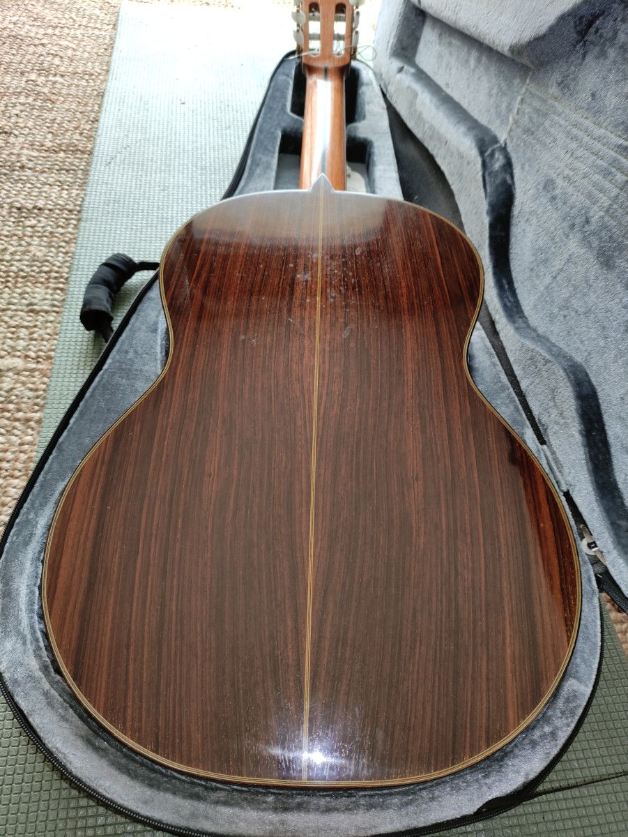 Guitarra de concierto del año 1992 revisada y en perfectas condiciones. Imitación modelo fleta, de palo santo y abeto. Pagué 200.000 de las antiguas pesetas. La vendo por 1250 €, con estuche.