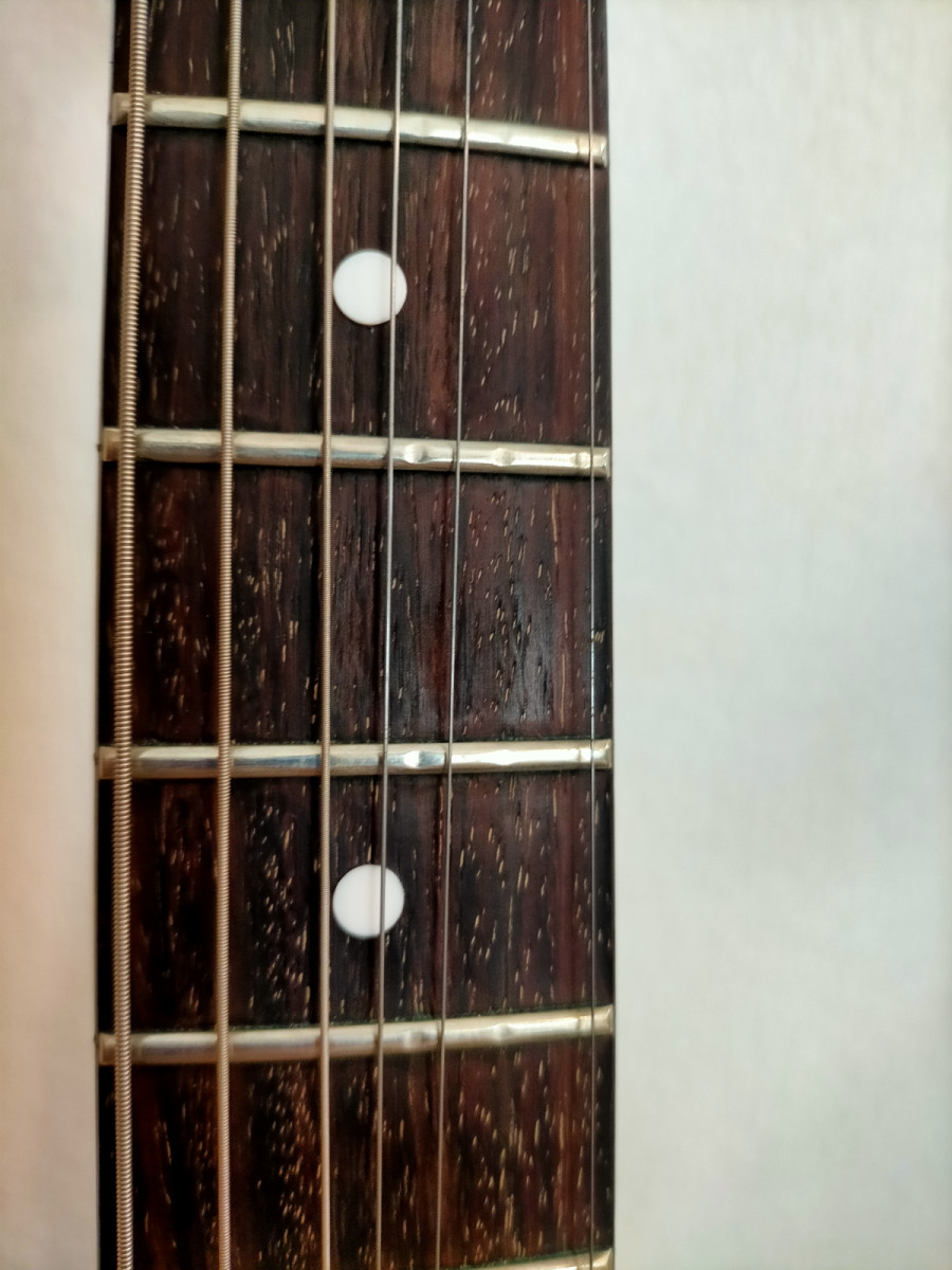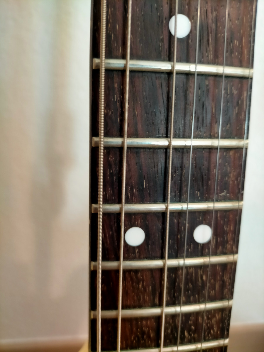 Guitarra eléctrica Charvel Model 3, made in japan preciosa, de mediados de los 80. Buen estado en general. Algunas marcas que se ven en las fotos. Los trastes tiene mucha vida algunos perfectos pero otros un pco marcados (fotos). Ajustada, cuerdas nuevas. Funda blanda acolchada afuncional. Pastilla del puente dimarzio. La pala fuer redondedada por estética de modo profesional. Pastilla puente dimarzio, puente khaler. Calidad tanto en construcción como sonido. NO cambios, por favor.