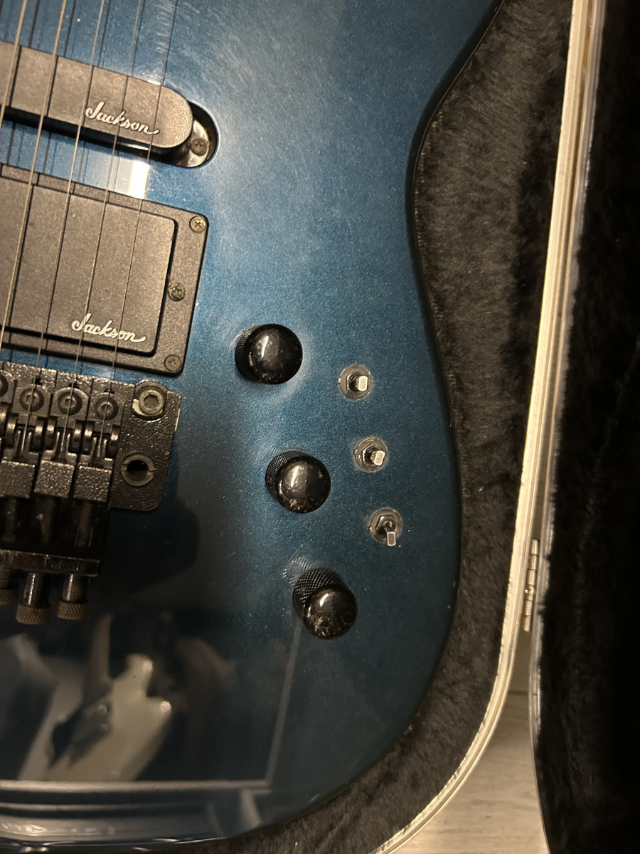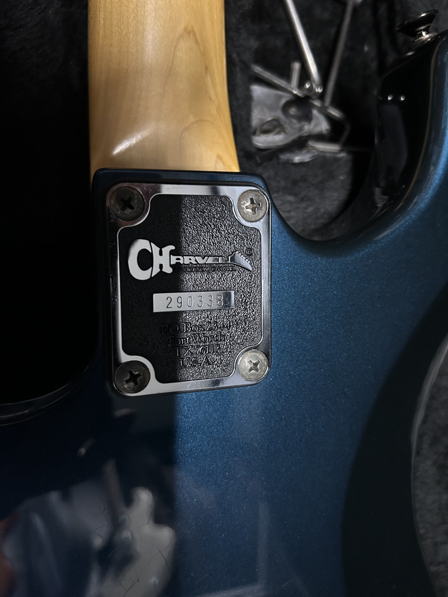 Vendo una guitarra eléctrica Charvel Model 4 by Jackson Japonesa en color azul metalizado, revisada por luthier. Está en buen estado aunque tiene algunas marcas de uso. Puente flotante con palanca tipo jack, cejuela de bloqueo, microafinadores, Circuito activo. No sé el año de fabricación exacto pero debe de andar por finales de los 80.