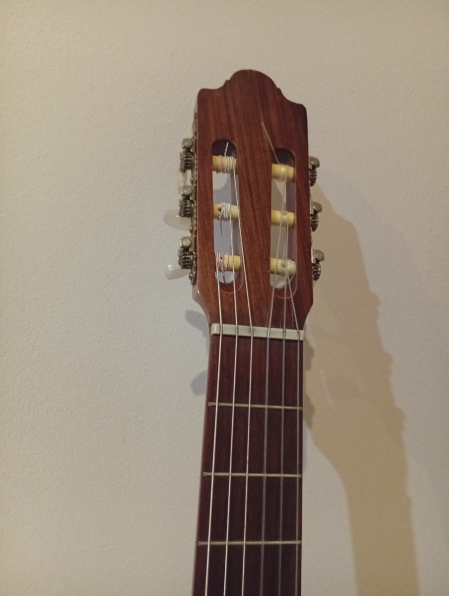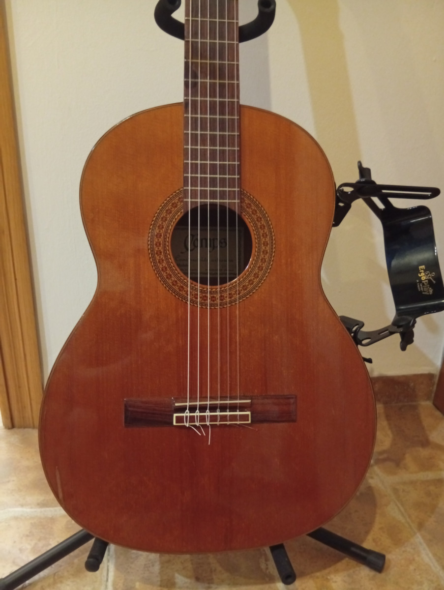 Hola a tod@s,vendo o cambio esta clásica que ha llegado hace poco,algun toque por la edad,el mas notorio en la tapa bajo el brazo,sonando perfecta y con cuerdas nuevas Savarez.