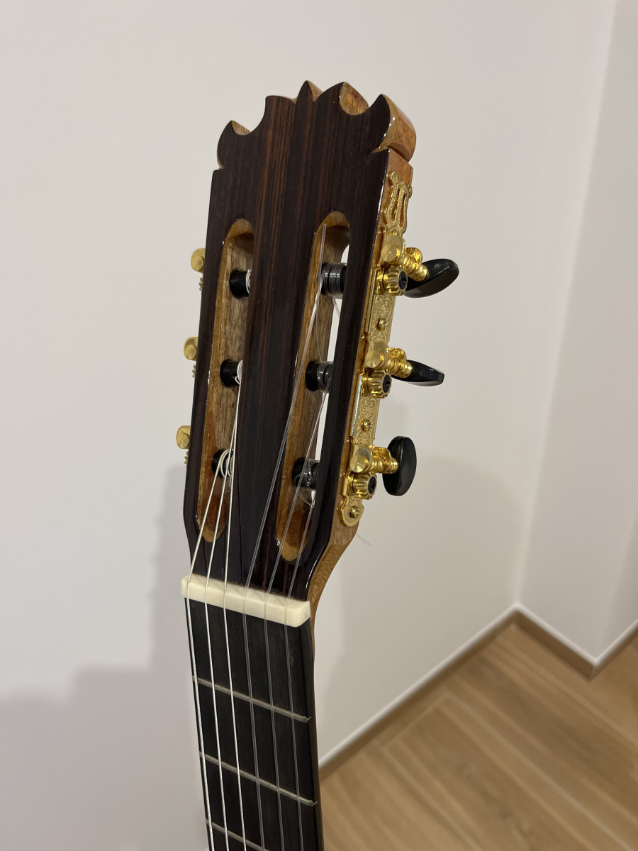 Guitarra de Francisco Bros con piezas únicas. Esta guitarra ha sido construida con los mejores materiales elegidos por Francisco Bros por sus secados y calidades. Una guitarra construida 100% artesanalmente con el antiguo sistema tradicional español.