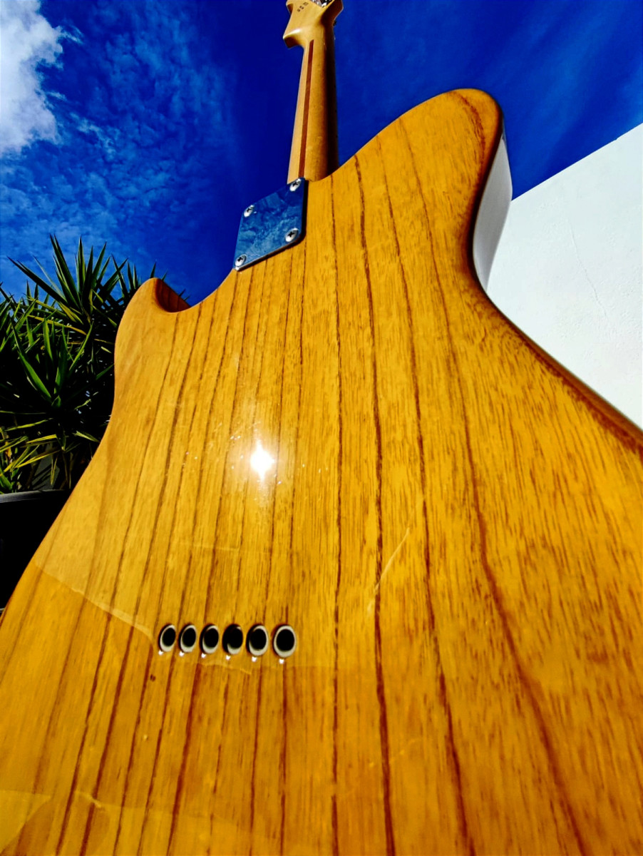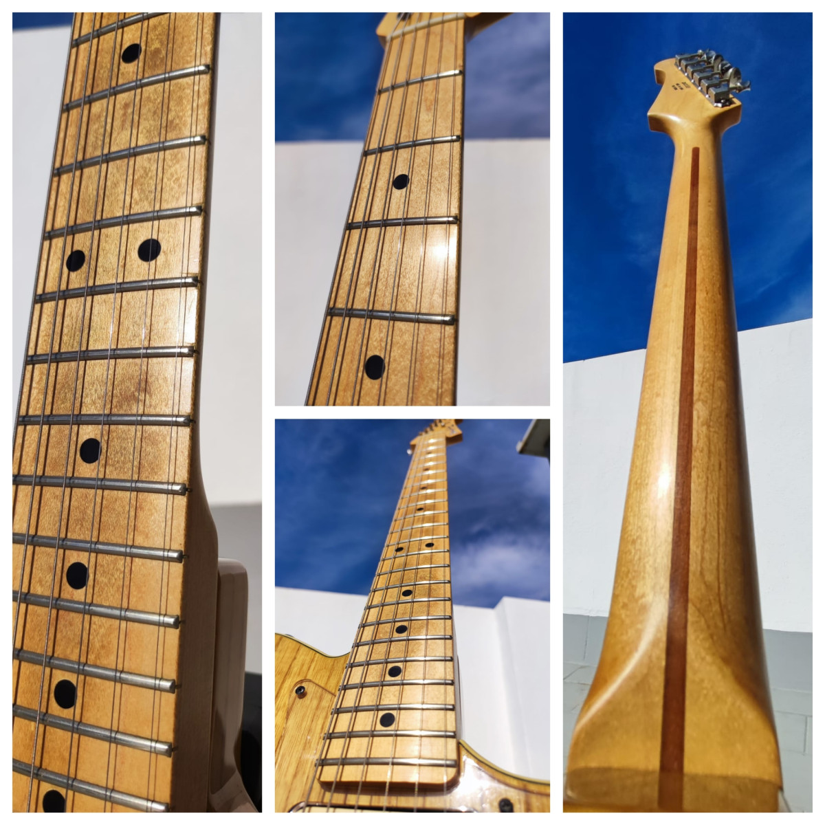La guitarra está en un estado excelente, no tiene marcas ni desgastes en los trastes. Empieza a aparecer la típica mancha de los mástiles de arce que no están esmaltados en el diapasón.