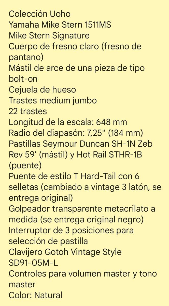 Guitarra colección UOHO - Telecaster Yamaha Mike Stern