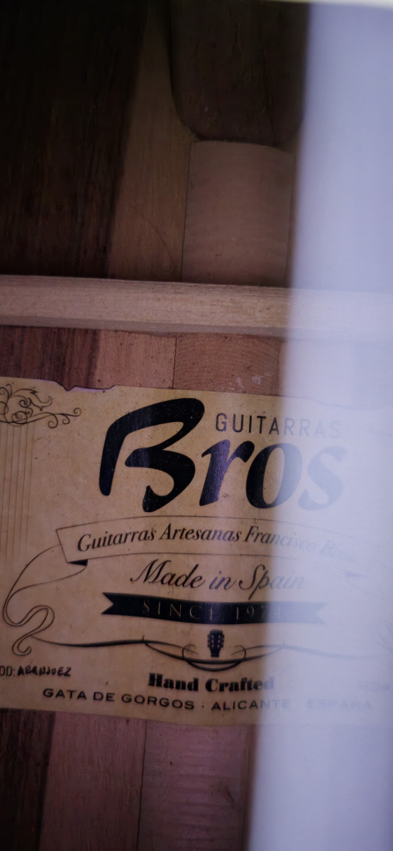 Guitarra de concierto Bros modelo Aranjuez, toda maciza. Las especificaciones están en la última foto. Tiene algunas marquitas en la tapa, pero nada importante. ¡Es preciosa! La doy con funda rígida. Mira más guitarras en mi perfil.