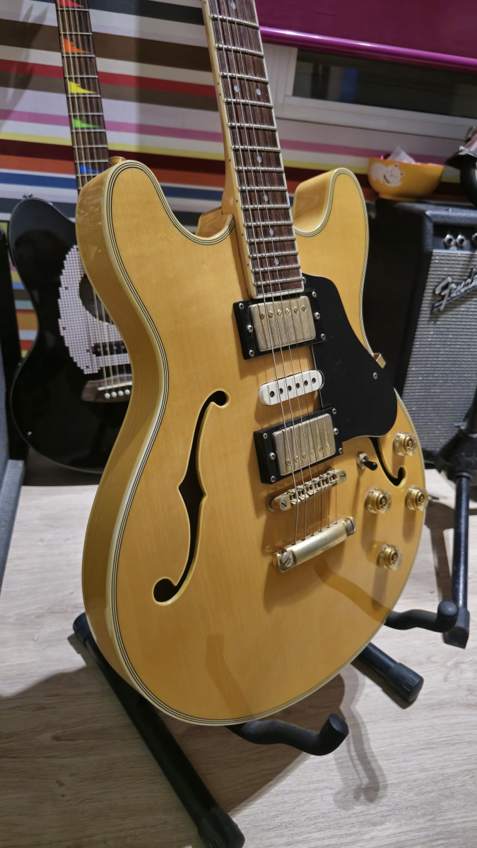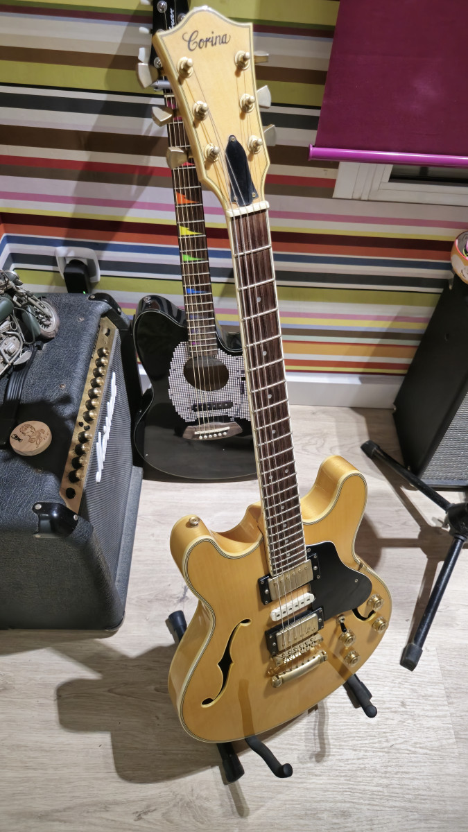 Guitarra Corina, modelo 335, guitarra echa en korea en los 70/80, modelo difícil de encontrar, muy similar ( por no decir igual), que las aria TA, suena de lujo y está como nueva.. no tiene mic en el centro, tiene solo puesto un cobertor.. si te gustan las 335 no te podes perder esta guitarra..