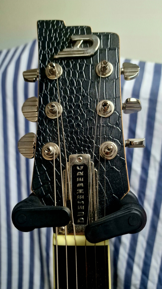 Vendo esta guitarra en estado absolutamente impecable, sin uso, idéntica a nueva, incluyendo maleta original Duesenberg, con 2 P90 Duesenberg. Es un modelo muy exclusivo, difícil de encontrar, que se ha vendido entre 2.800 y 2.900 € (la compre en 2016, por 2.600 €, más el coste de ajuste en luthier). Precio actualizado: 2.000 €. Ahorro real de más de 800 €. Entrega en mano (Madrid). No cambios. No regateos absurdos. Ya está ajustada al mercado. Instrumento para quien busca lo mejor, sin pagar el sobreprecio del nuevo. Si la pruebas, te la llevas.