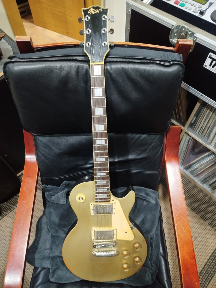 Se cambia guitarra eléctrica de los 70 estilo Les Paul, marca Maya, GoldTop. Una guitarra clásica para músicos y coleccionistas. Made in Japan. Cableado revisado.