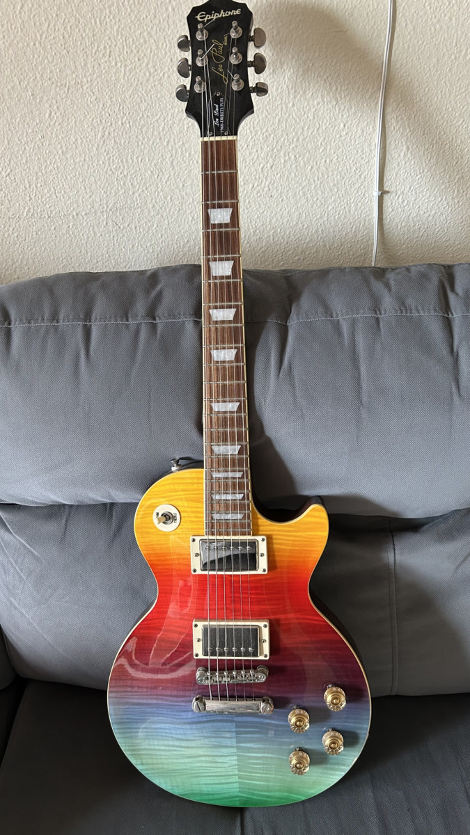 Guitarra electrica Epiphone Limited Edition Les Paul Tribute Plus Outfit-Rainbow con funda rigida original.