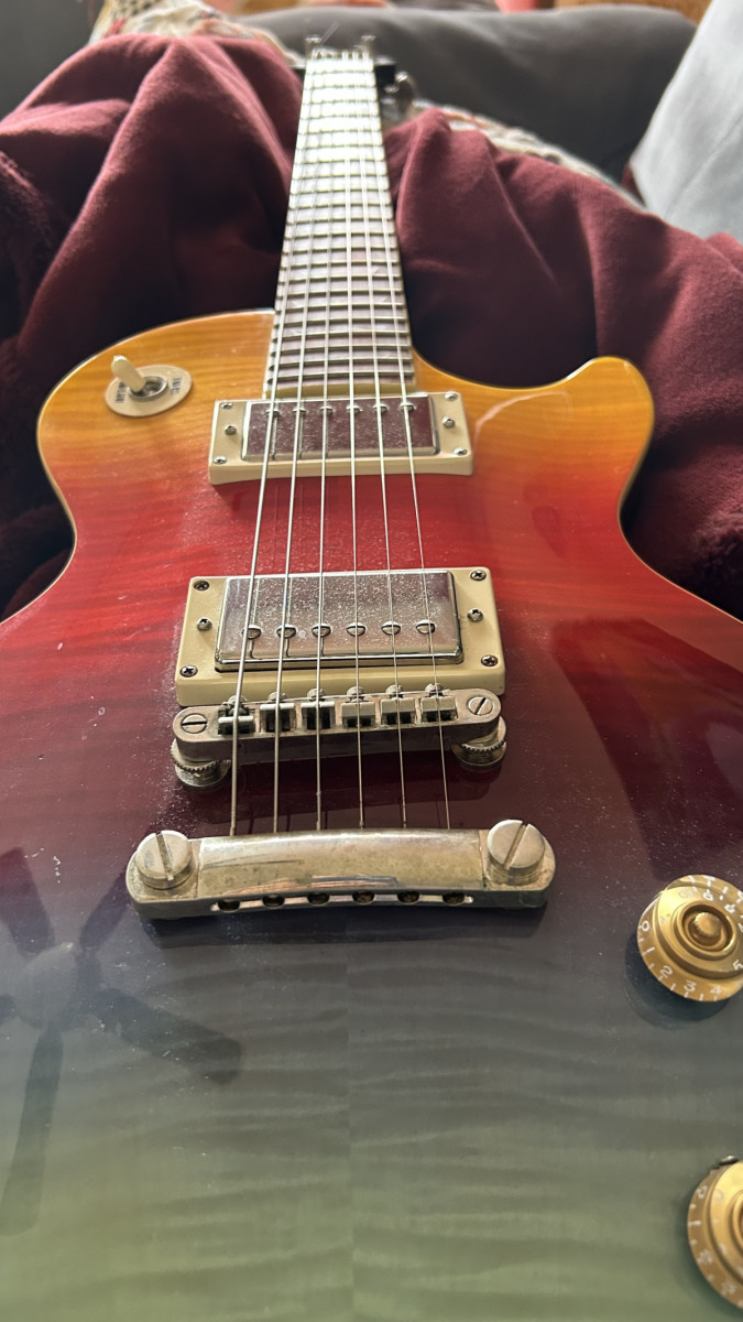 - Cuerpo de caoba y tapa de arce veteado. Sonido clásico Les Paul