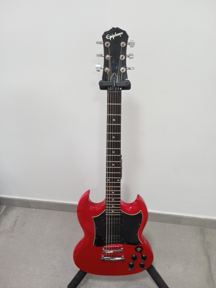 Guitarra eléctrica Epiphone SG 310 en color rojo. Está en buen estado.