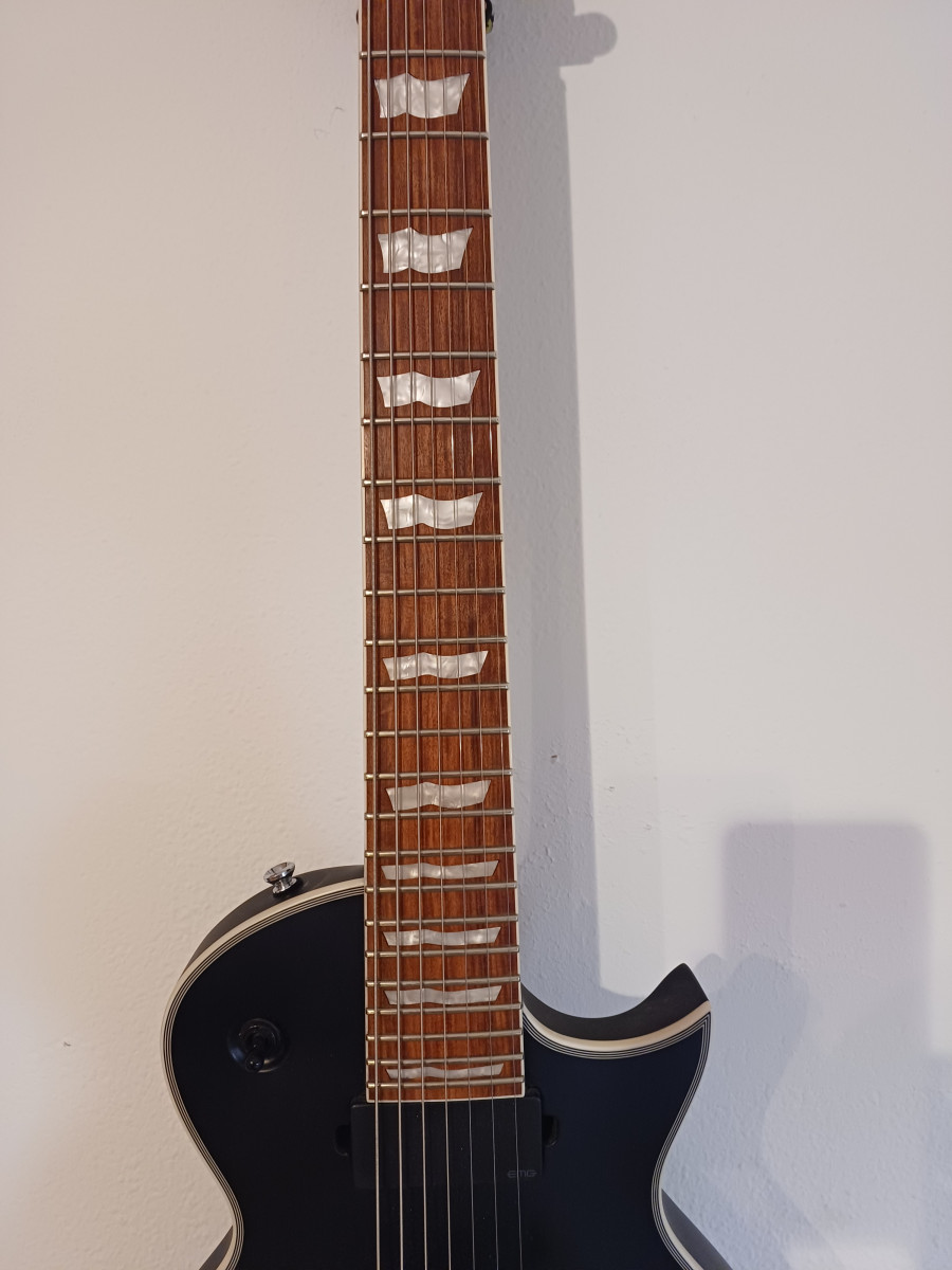 Guitarra eléctrica LTD EC-407 de 7 cuerdas en perfecto estado, sin un solo golpe o defecto. De 2019. Pastillas: EMG 81-7 y EMG 707 activas.