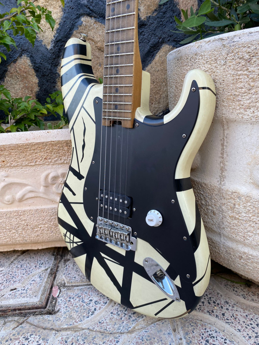 Vendo la EVH Franki Striped 78 Eruption, la guitarra está perfecta y habrá saido de casa 2 veces, totalmente ajustada y nueva, el único cambio que tiene es el golpeador, le puse uno negro mate, pero conservo el original.