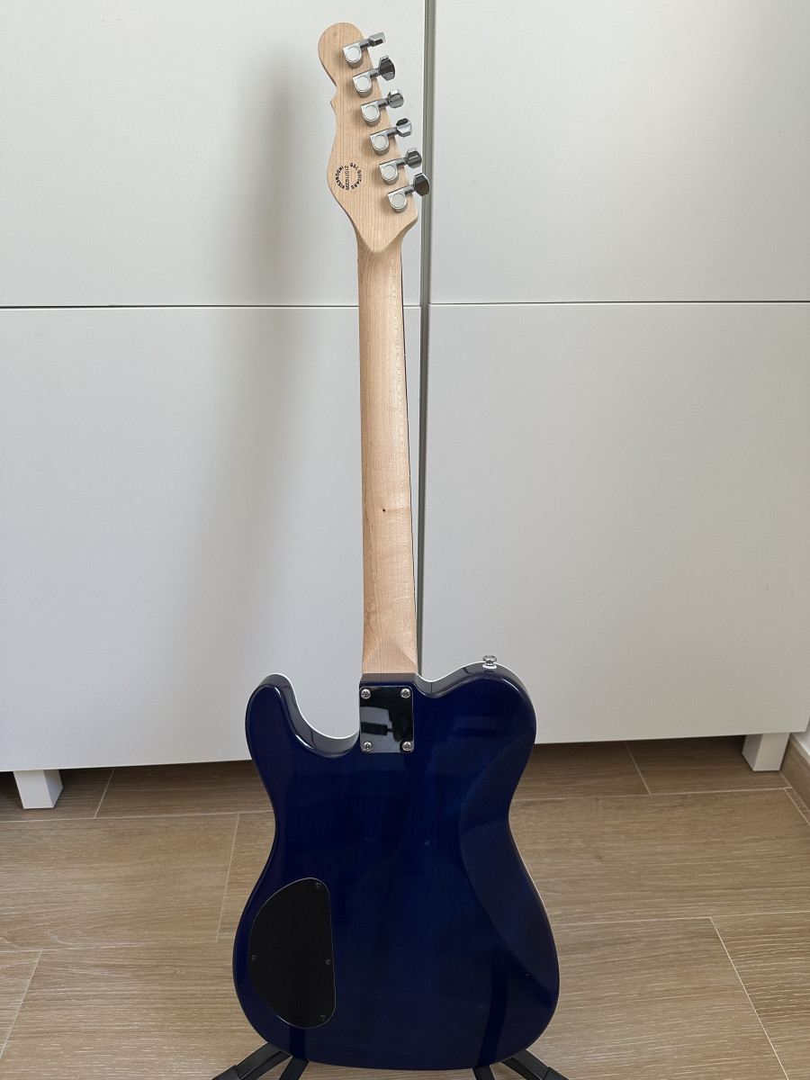 Es una G&L (la marca de Leo Fender) modelo Tribute Series ASAT Deluxe Carved Top, en color azul.