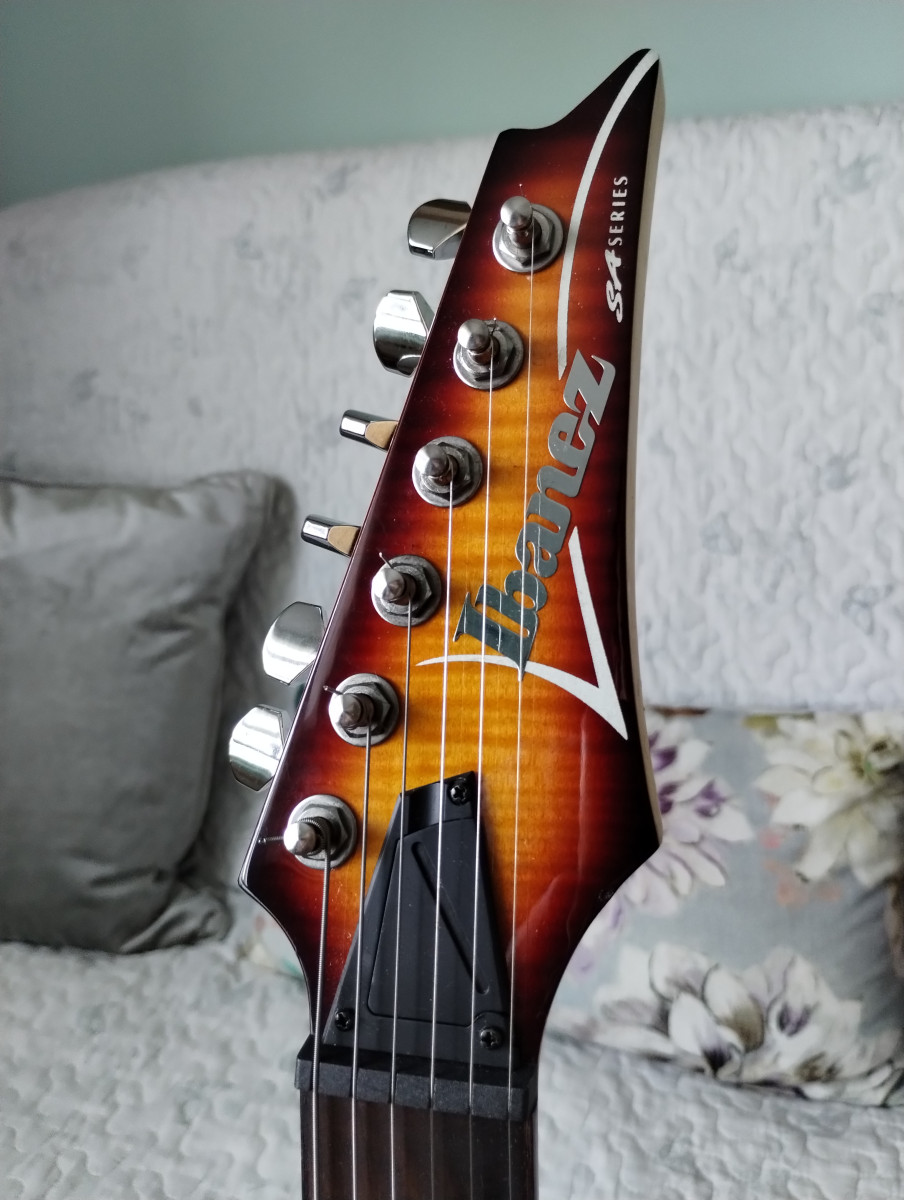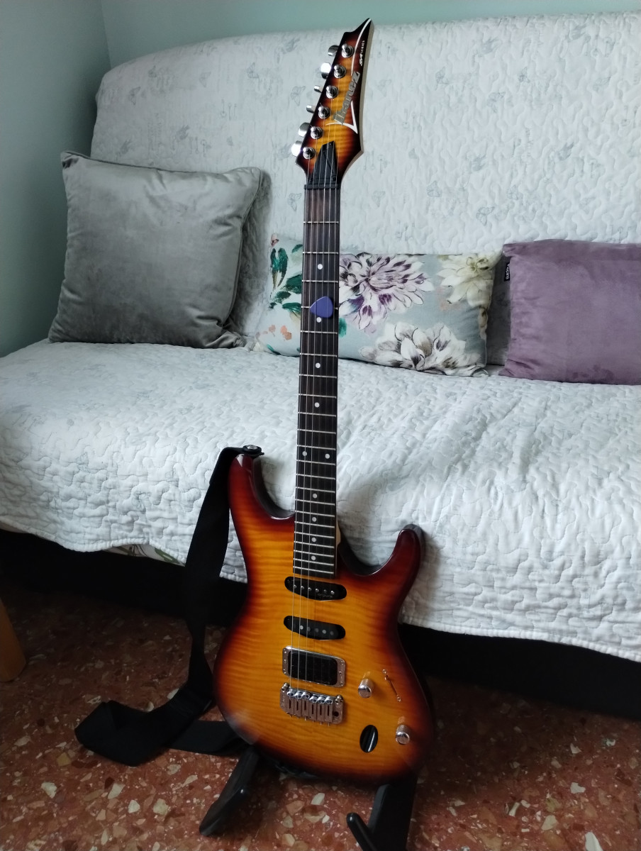 Guitarra eléctrica Ibanez SA 160 FM con acabado flameado.