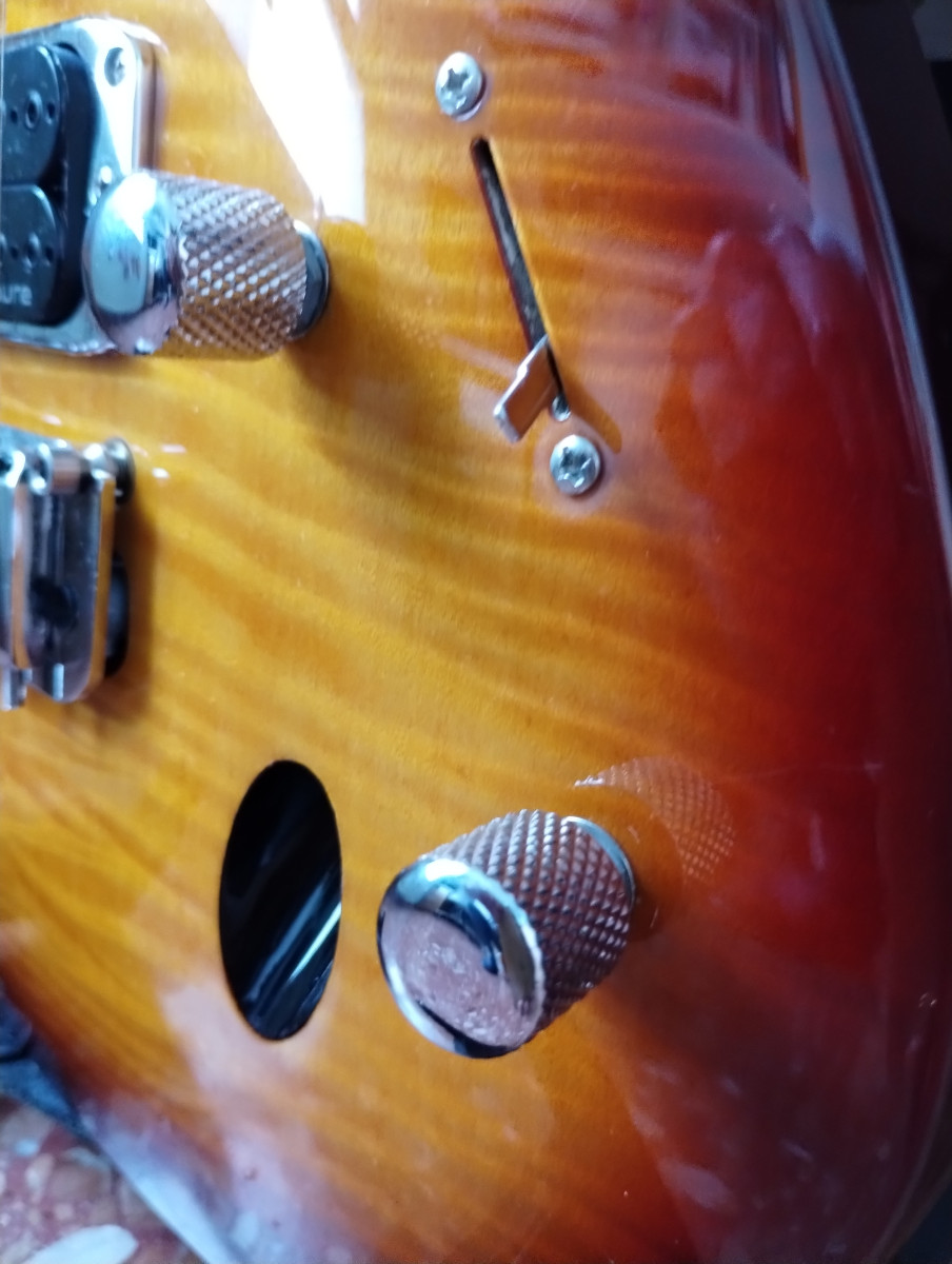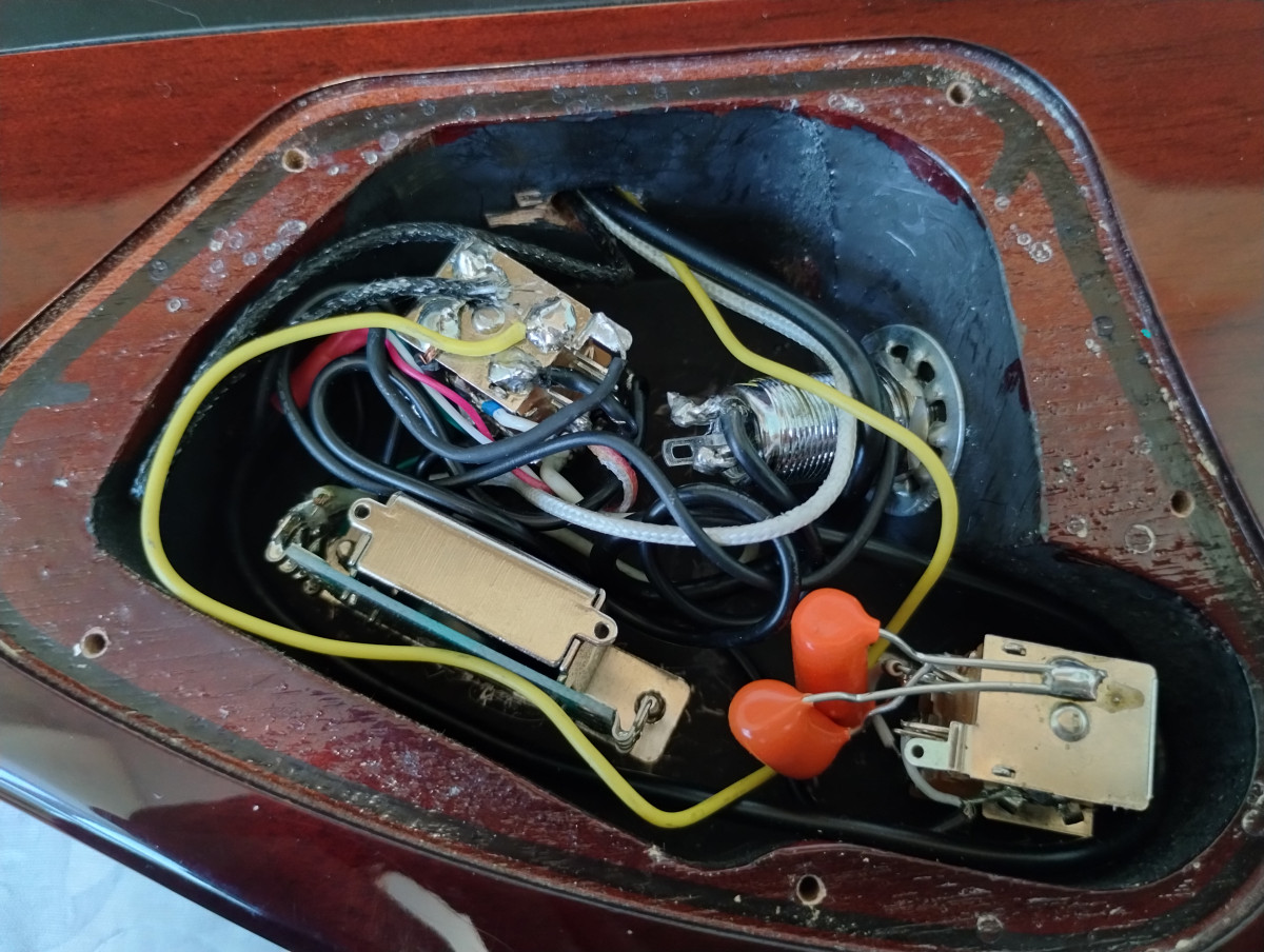 Posibilidad de cambio de condensadores entre 22 y 47nF en el potenciometro del tono mediante Split coil. Recorta de manera distinta el tono según condensador elegido. Muchas posibilidades de juego de sonidos. Condensadores Orange Drop.