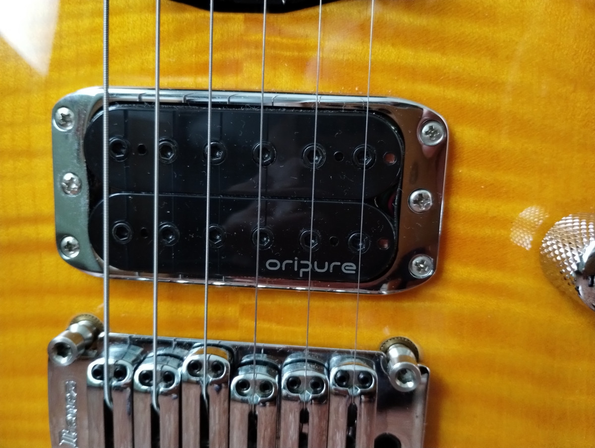 Pastilla de puente humbucker Oripure alnico 5 impedancia 14k. Posibilidad de single con Split coil en volumen.