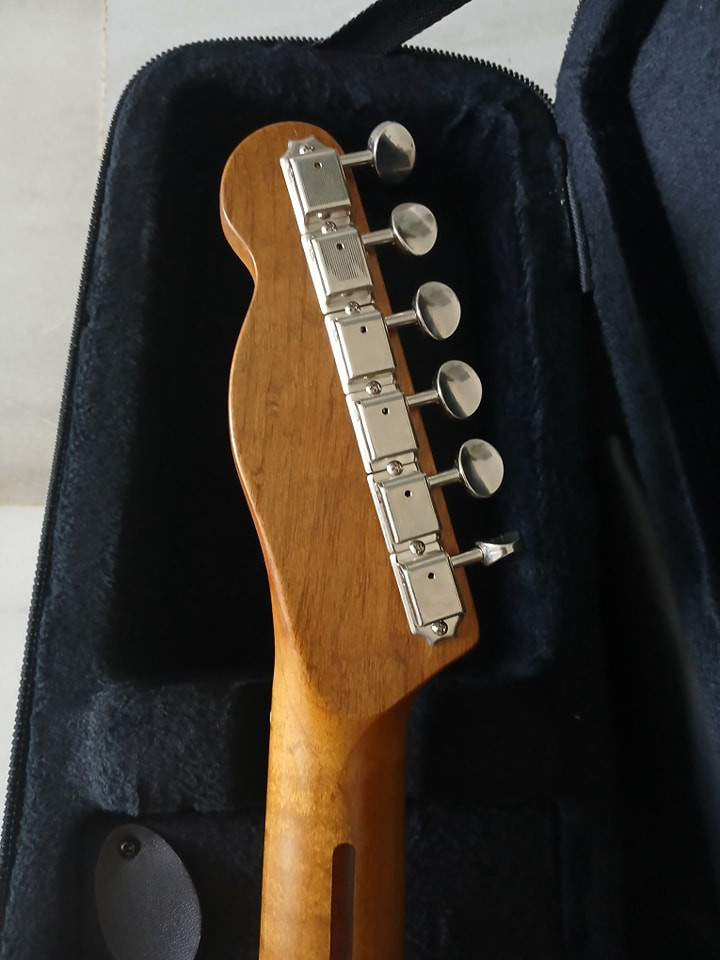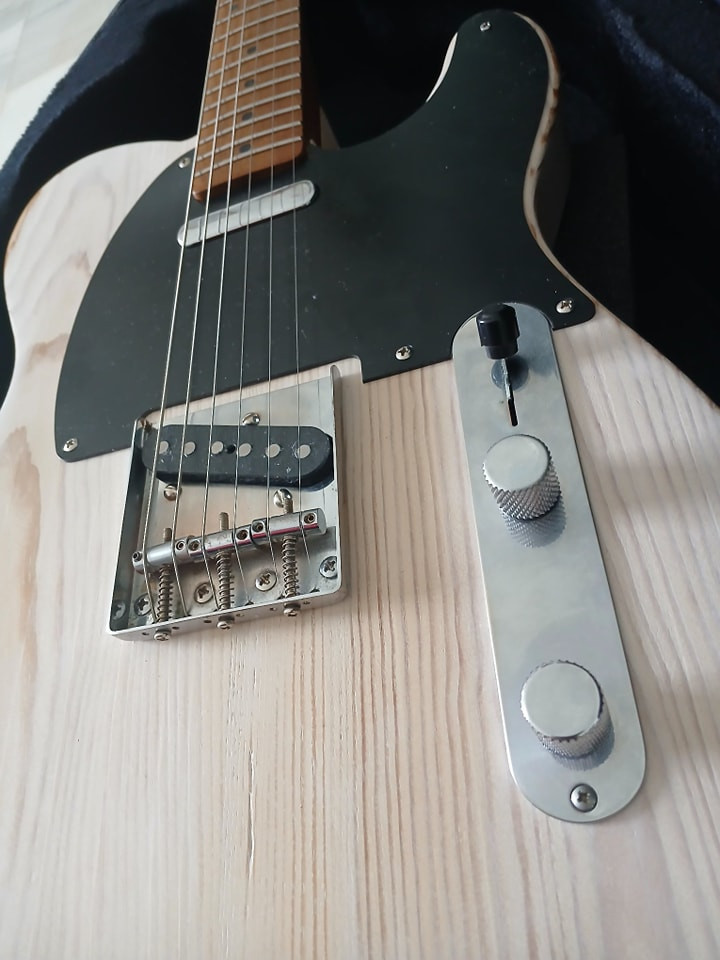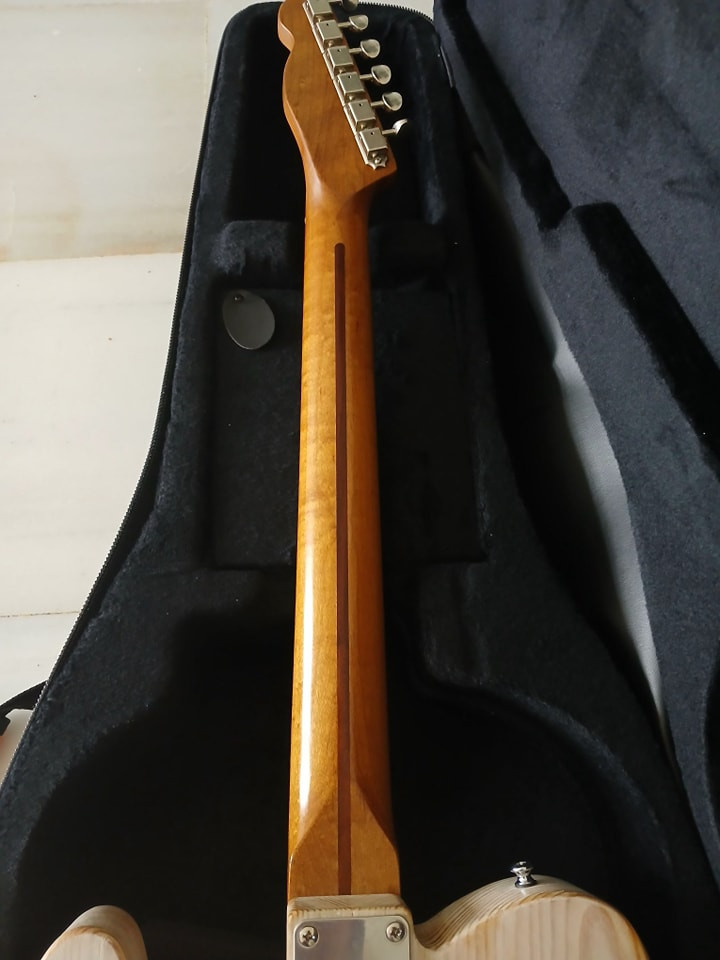 Cuerpo Bezier de dos piezas de pino relicado, mástil de arce tostado de 1 pieza estilo 50,puente vintage, pastillas pure vintage 51 Fender, electronica de calidad, golpeador Fender de una capa, la guitarra suena tremenda, mejor ven aprobarla! la guitarra se a usado muy poco ,dos o tres ensayos y un concierto nada mas.