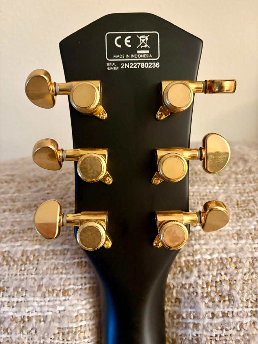 Se le añadio el anillo del selector de pastillas y la tapa del alma de una les paul standard