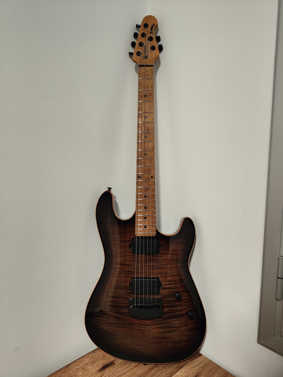 Guitarra de gama alta que ofrece un sonido de calidad y versátil. El cuerpo cuenta con una hermosa tapa de arce flameado ligeramente arqueada y un resonante cuerpo de okume. Las posiciones humbucker (1,3,5) ofrecen cuerpo y agresividad, en cambio, las posiciones single (2,4) ofrecen calidez, sutilidad y brillo. El mástil de arce tostado tiene un grosor medio, quizá ligeramente delgado; es extremadamente cómodo y se ajusta perfectamente a la mano. Viene con un estuche duro de protección máxima especial para este modelo, con la serigrafía de la marca y del modelo.