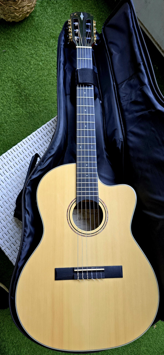 Guitarra marca Álvarez con tapa de abeto, aros y fondo de caoba. La guitarra es electrificada y está totalmente nueva; aún le queda garantía. Guitarra con muy buen sonido y buenísimos acabados. Tiene previo con afinador incorporado y su funda de gran calidad. Si buscas una guitarra para iniciarte y que lo tenga todo, esta es la tuya. Más guitarras en mi perfil.