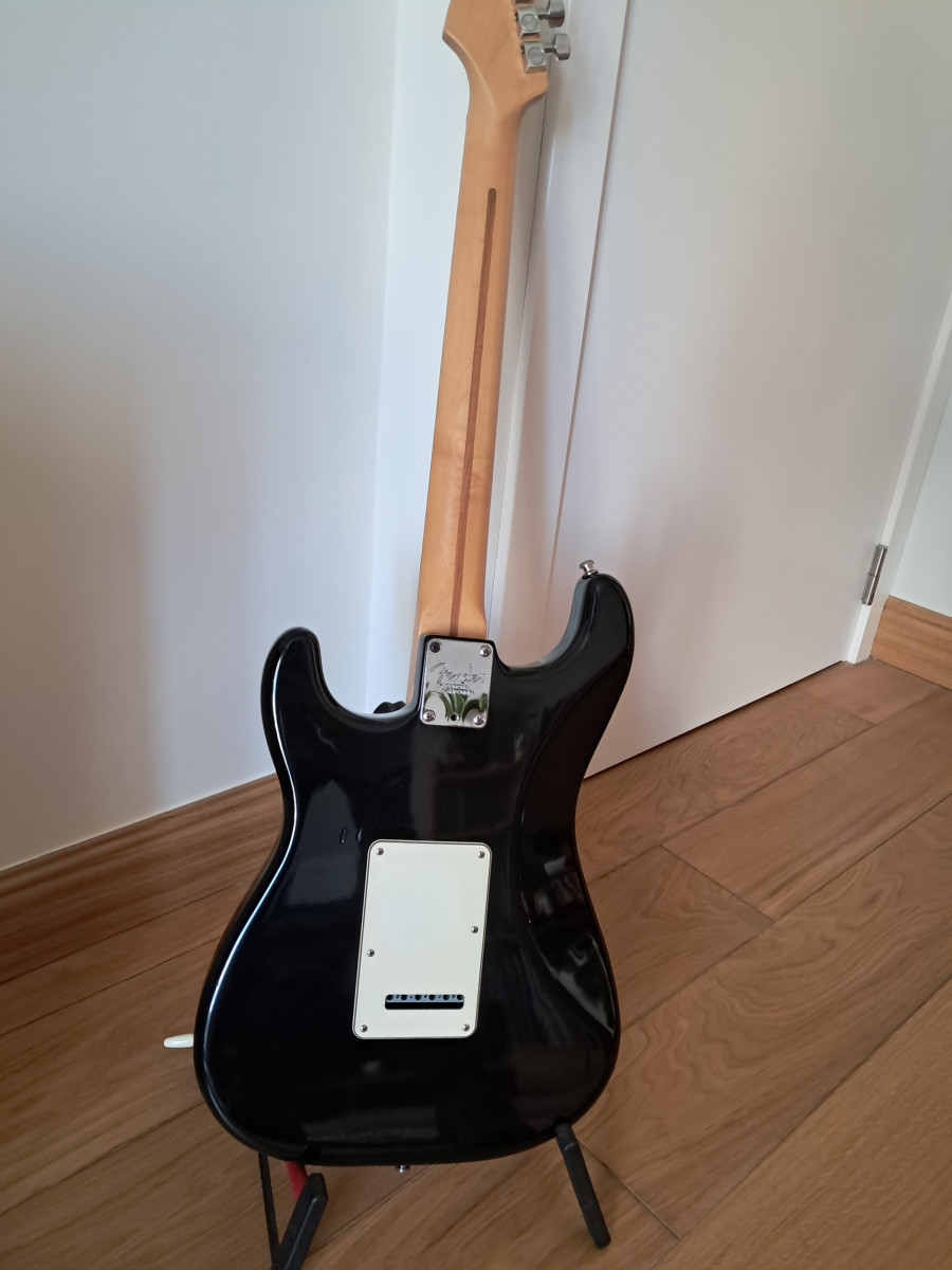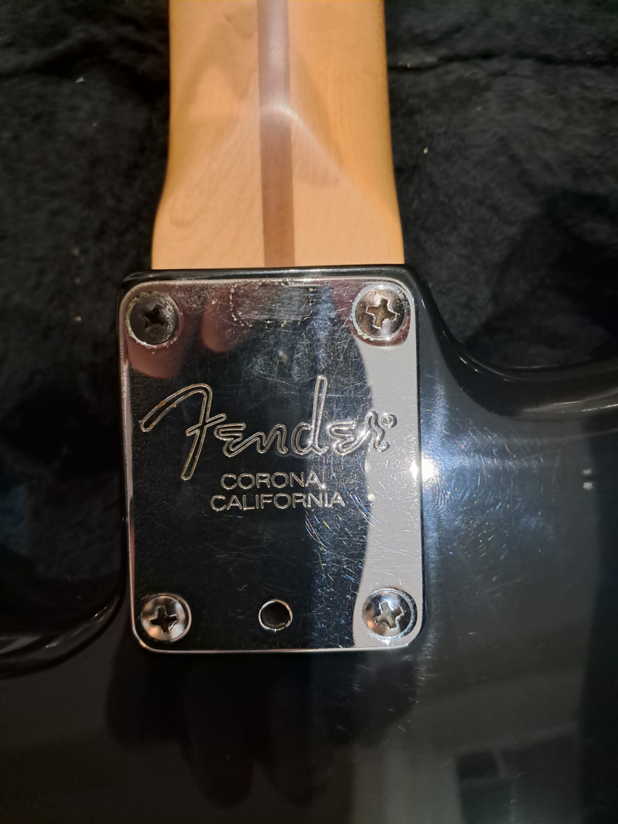Guitarra eléctrica Fender American Stratocaster de 2000 en color negro.