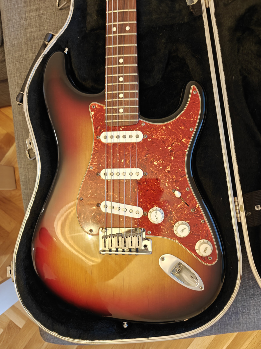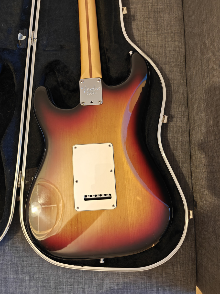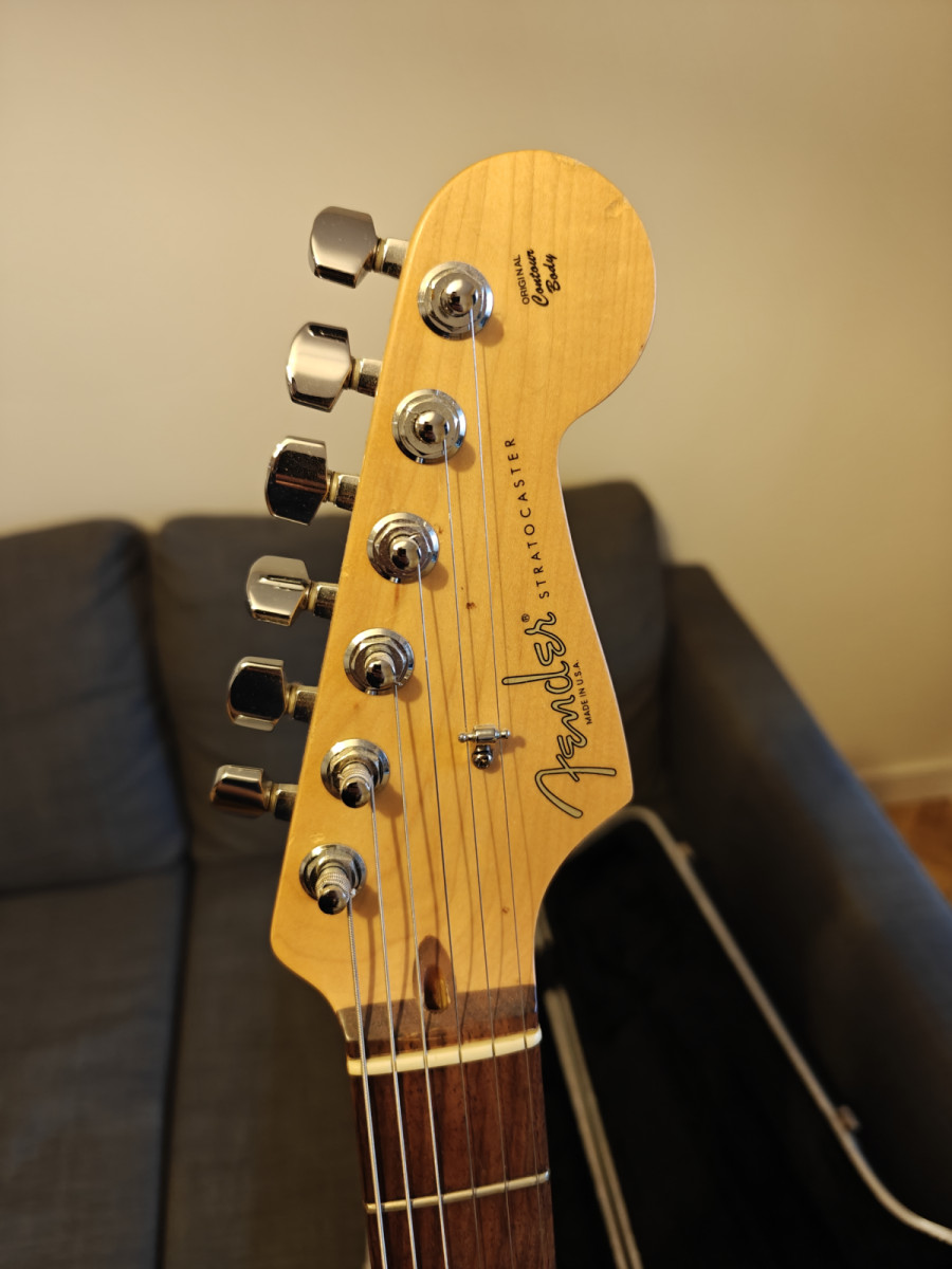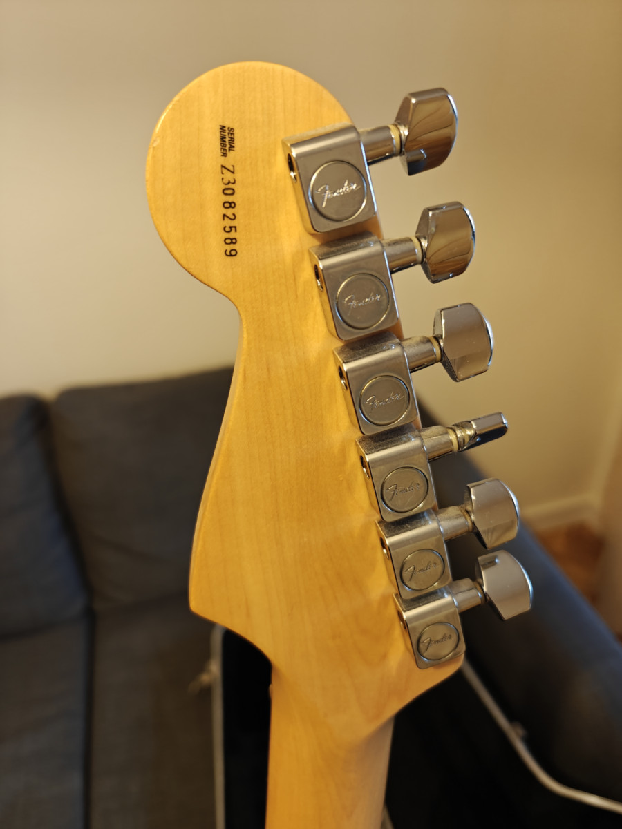 Guitarra eléctrica Fender Stratocaster American Standard con acabado Sunburst. Año 2003. Número de serie Z3082589.