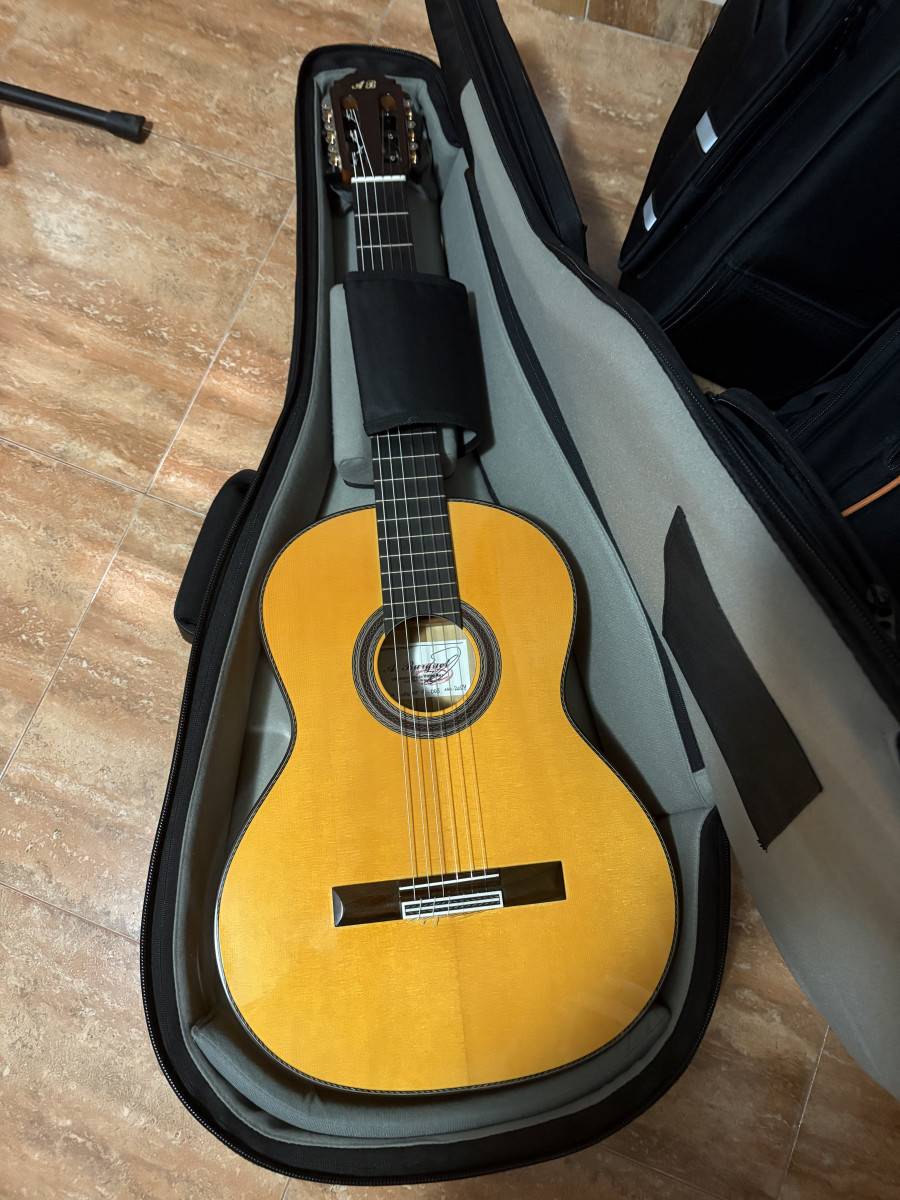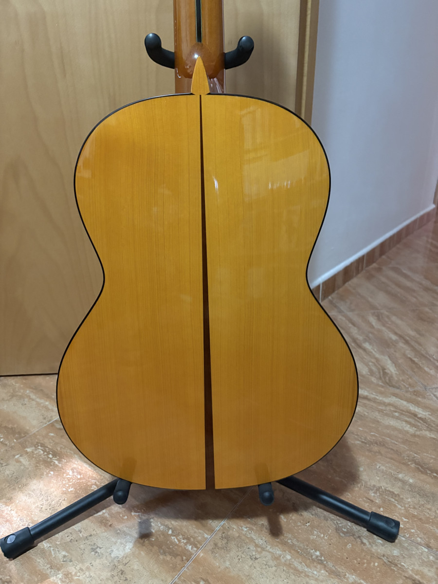 Guitarra flamenca Amalio Burguet “La Burguet”, con aros y fondo de ciprés y tapa de pino abeto. Se trata de una guitarra flamenca pura de gama alta. Nueva está en 3500. Lo podéis buscar en su web. Cualquier cosa me preguntais sin problema.