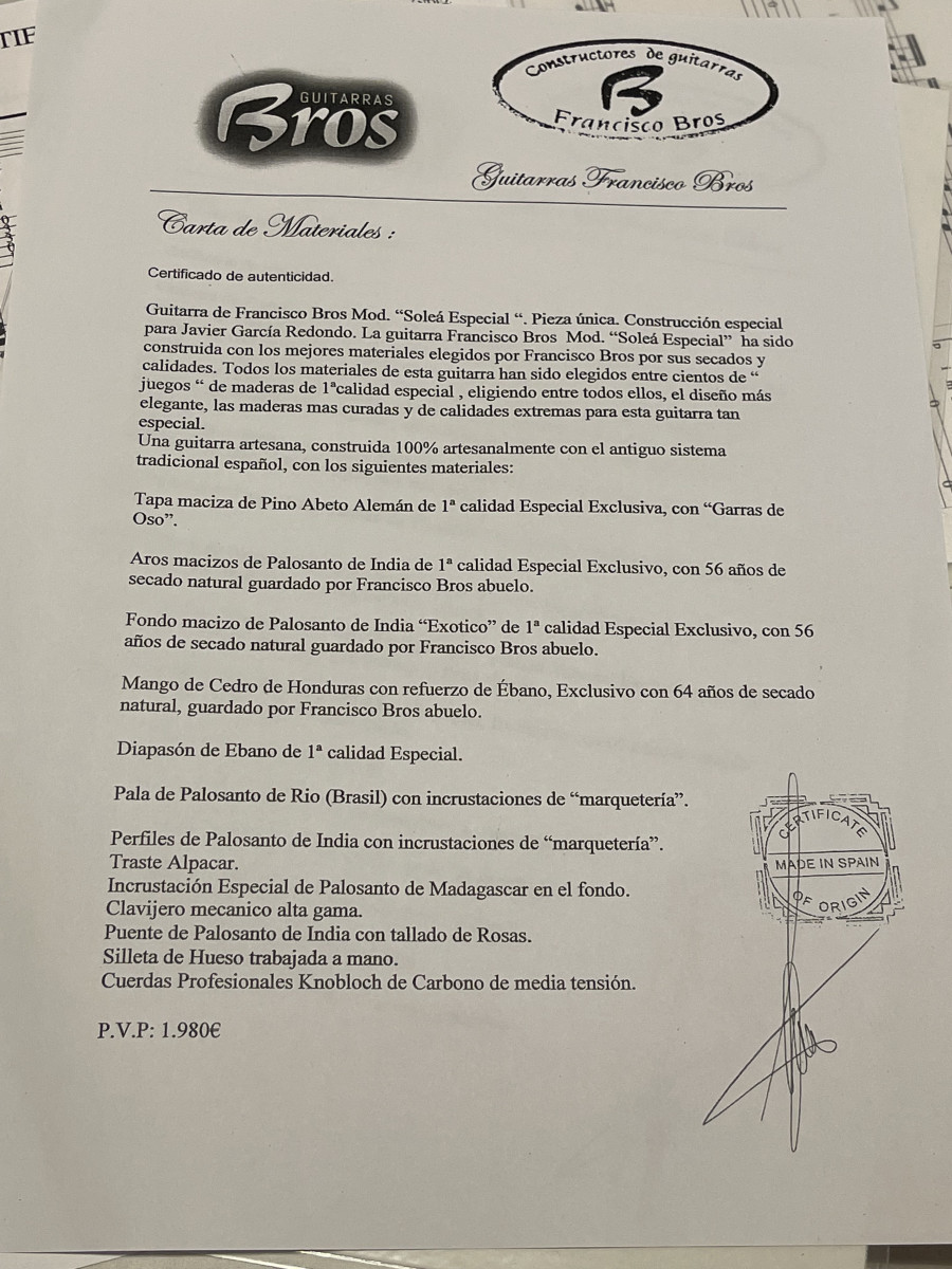 Con todo el dolor de mi corazón vendo por motivos económicos mi guitarra de palo santo Francisco Bros modelo “soleá” ESPECIAL. Hecha a medida , por encargo, a mano. De apenas unos meses. Adquirida en febrero/25.