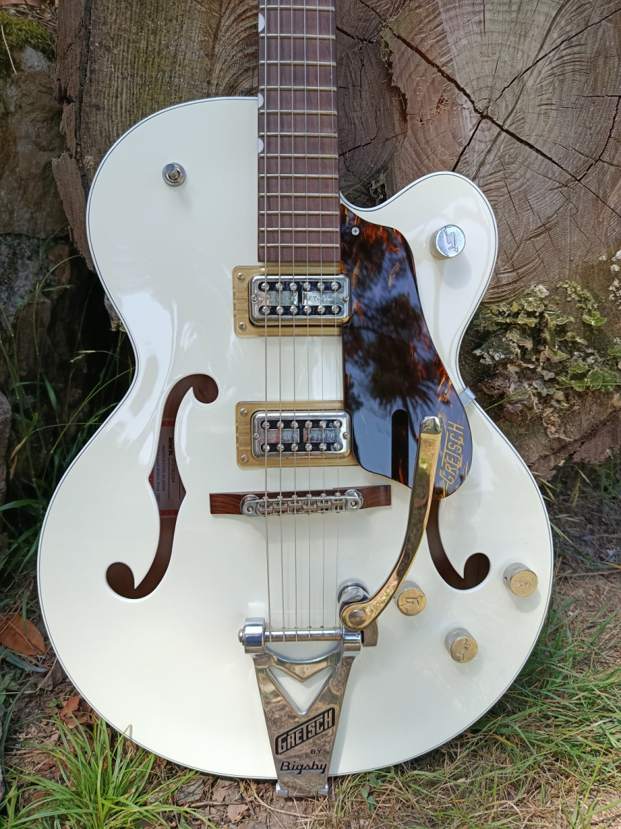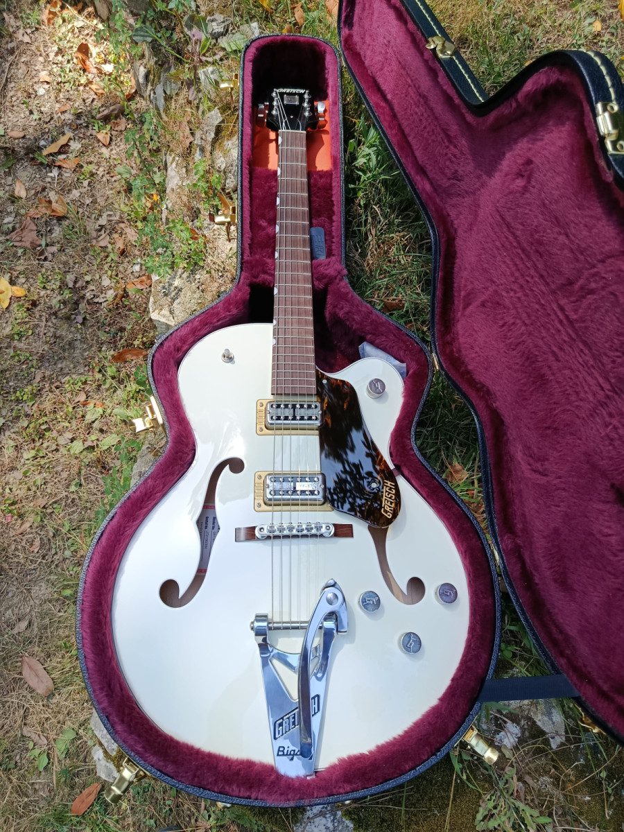 Guitarra Gretsch Anniversary 6118 Player's edition, año 2021, NOS, a estrenar. Blanco vintage/walnut. Clavijeros de bloqueo, bigsby con cuerdas a través, bloqueadores de correa, etc.. Documentación, estuche y caja de envío gretsch original...precio firme. Gibson, fender, prs